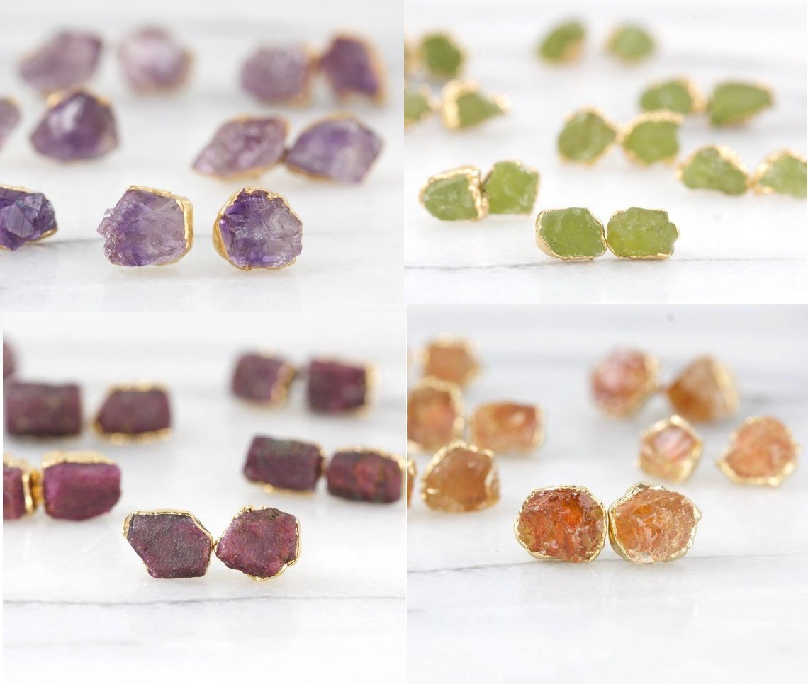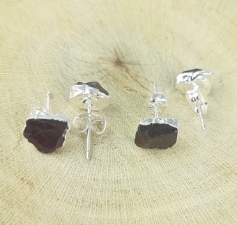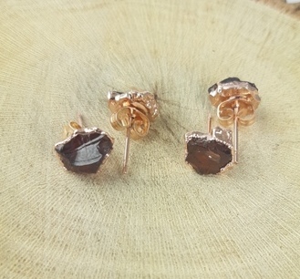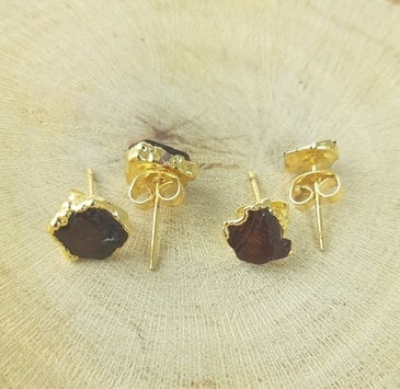 Explore in english - Garnet Rough Stone Stud Earrings - January Birthstone Earrings