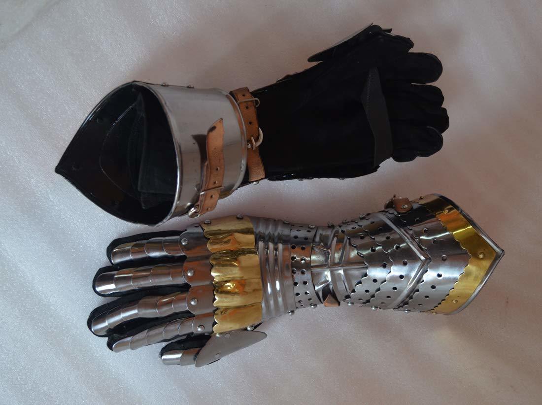 गौंटलेट ग्लव्स आर्मर पेयर डब्ल्यू ब्रास एक्सेंट - मध्यकालीन नाइट क्रूसेडर - स्टील (ब्रास)