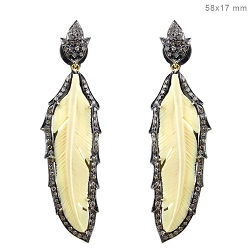 Explore in english - Gemstone Carving Diamond Pave Feather Earrings