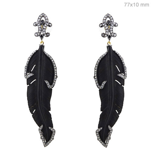 Explore in english - Gemstone Feather Style Carving Diamond Earrings