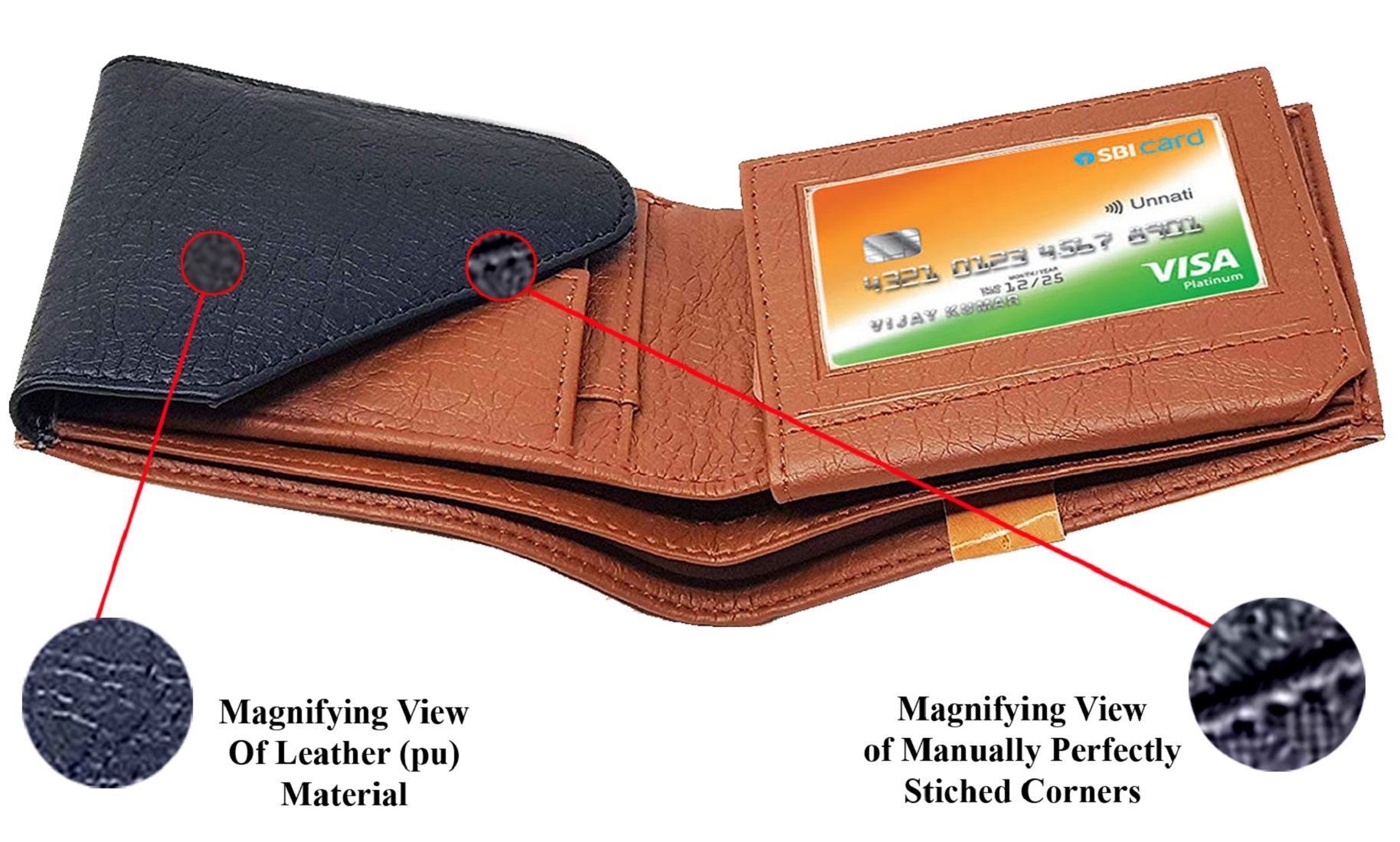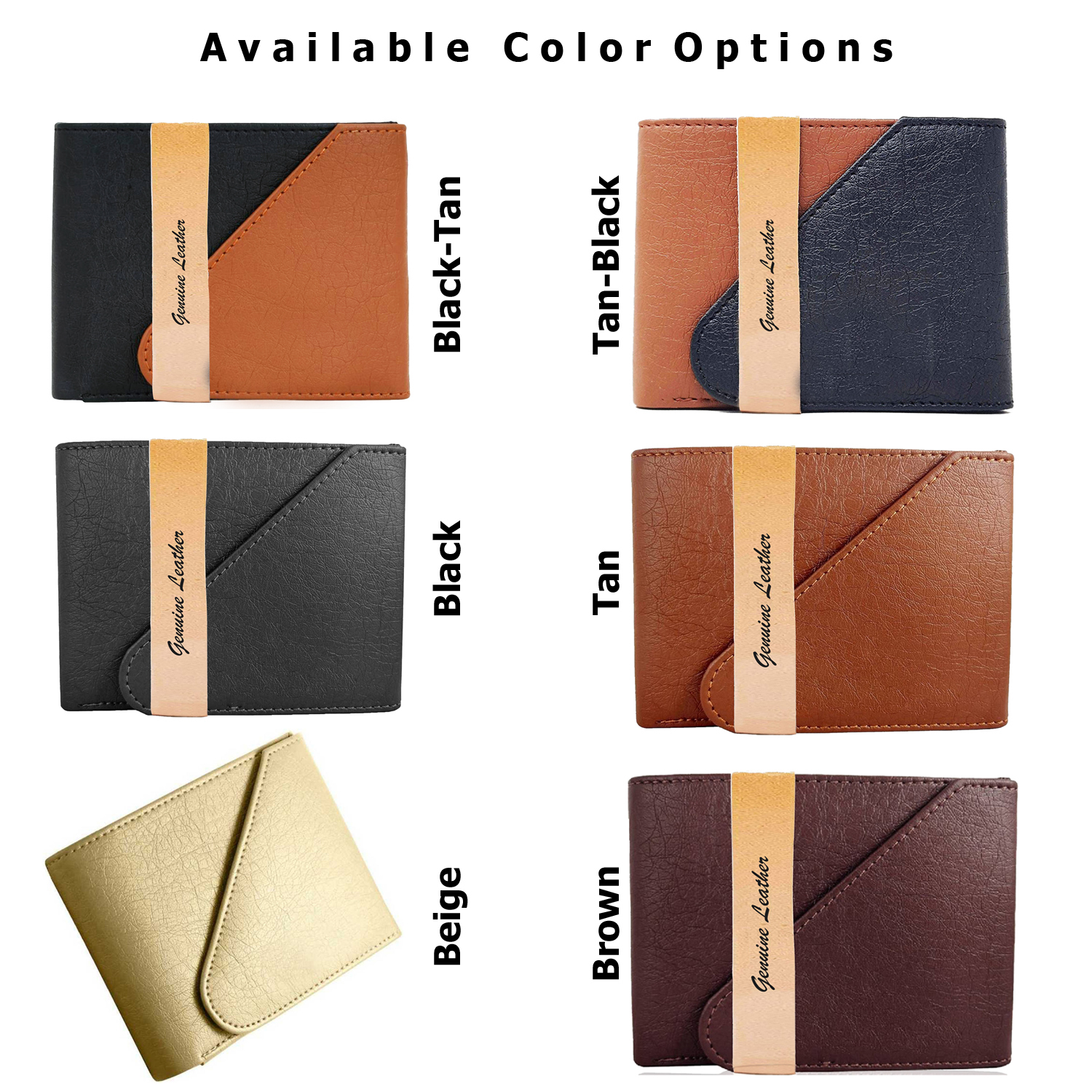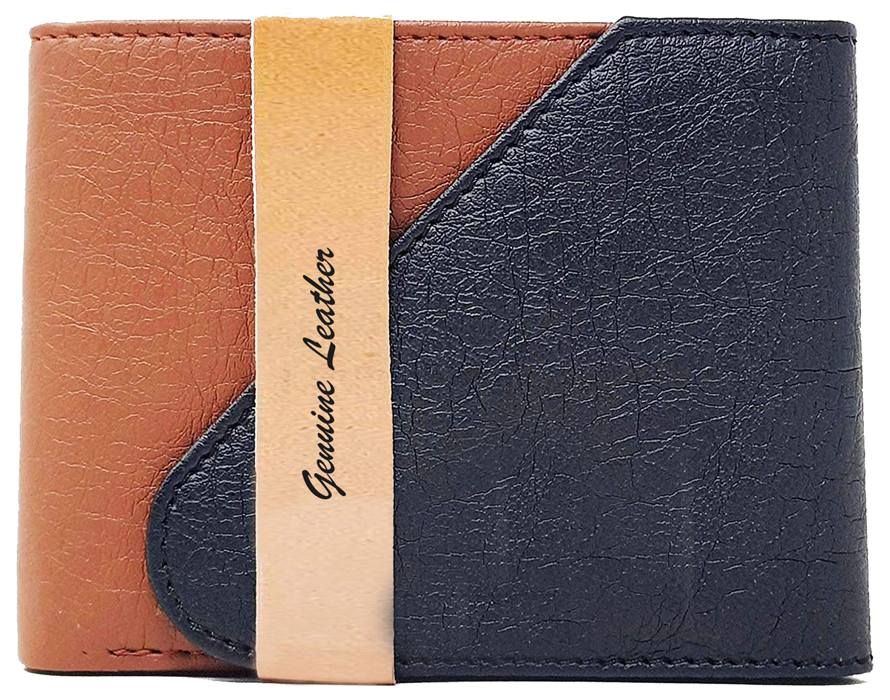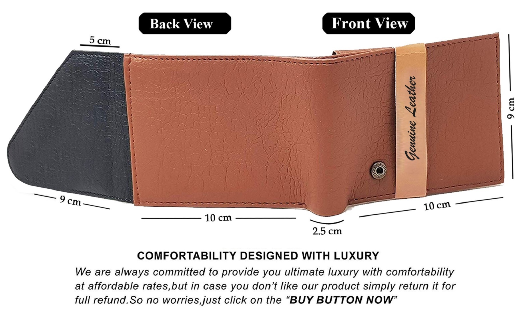 Explore in english - Mens Wallet PU Leather Tan-Black Tri-Fold Gents Purse