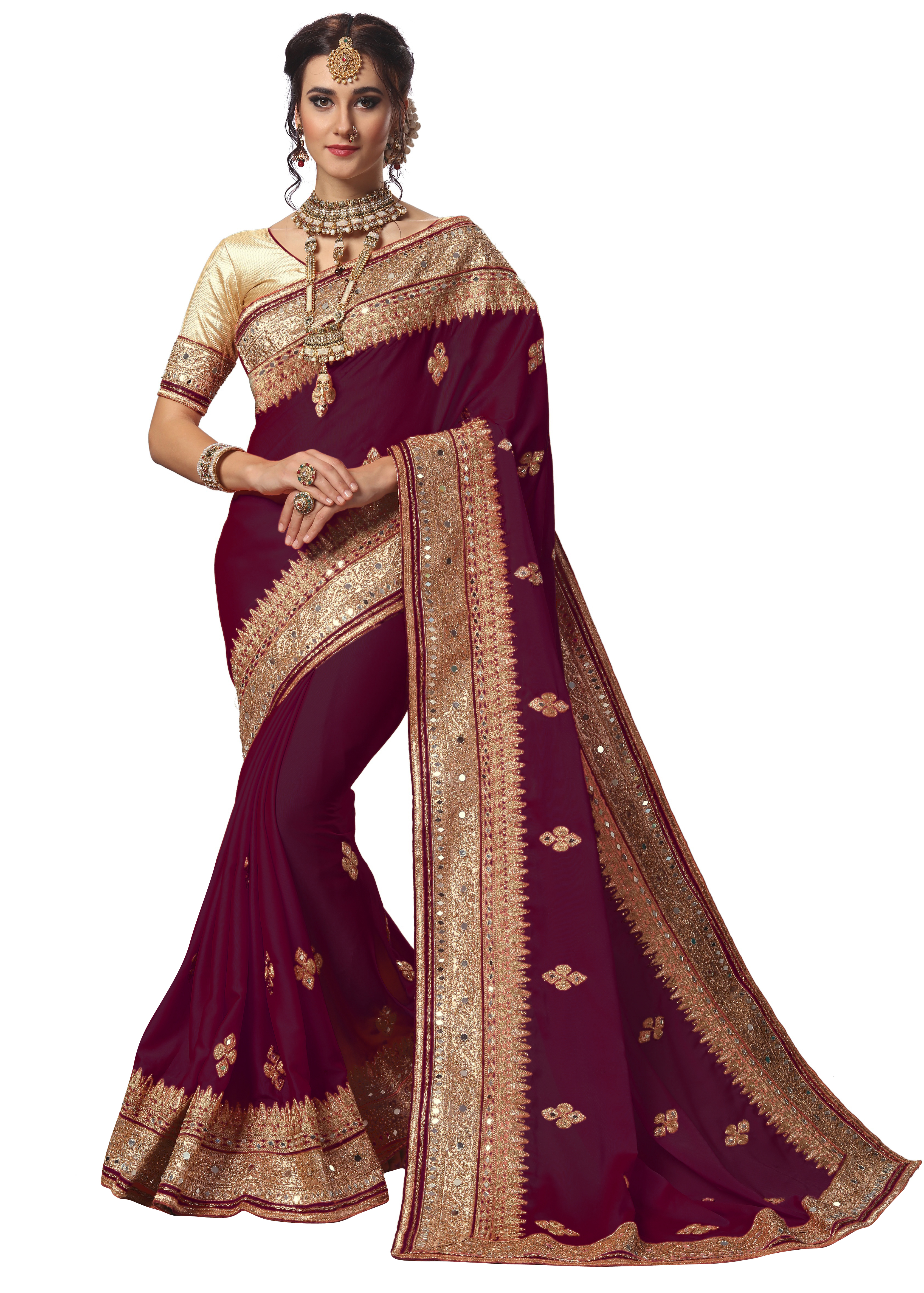 रेड जियोमेट्रिक डिज़ाइन एम्ब्रॉएडर्ड साटन साड़ी कलेक्शन