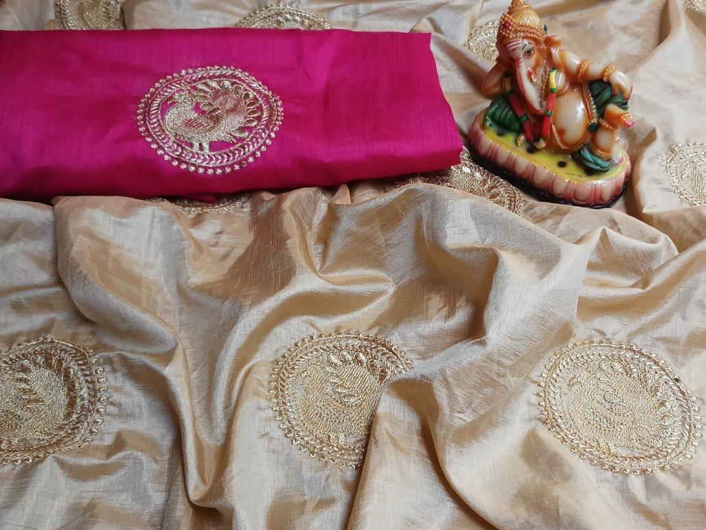 क्रीम रंग की महिलाओं की क्रश चिनोन साड़ी ब्लाउज़ और कमर बेल्ट के साथ
