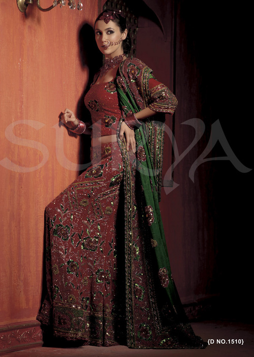Explore in english - Georgette Contrast Dupatta Lehenga