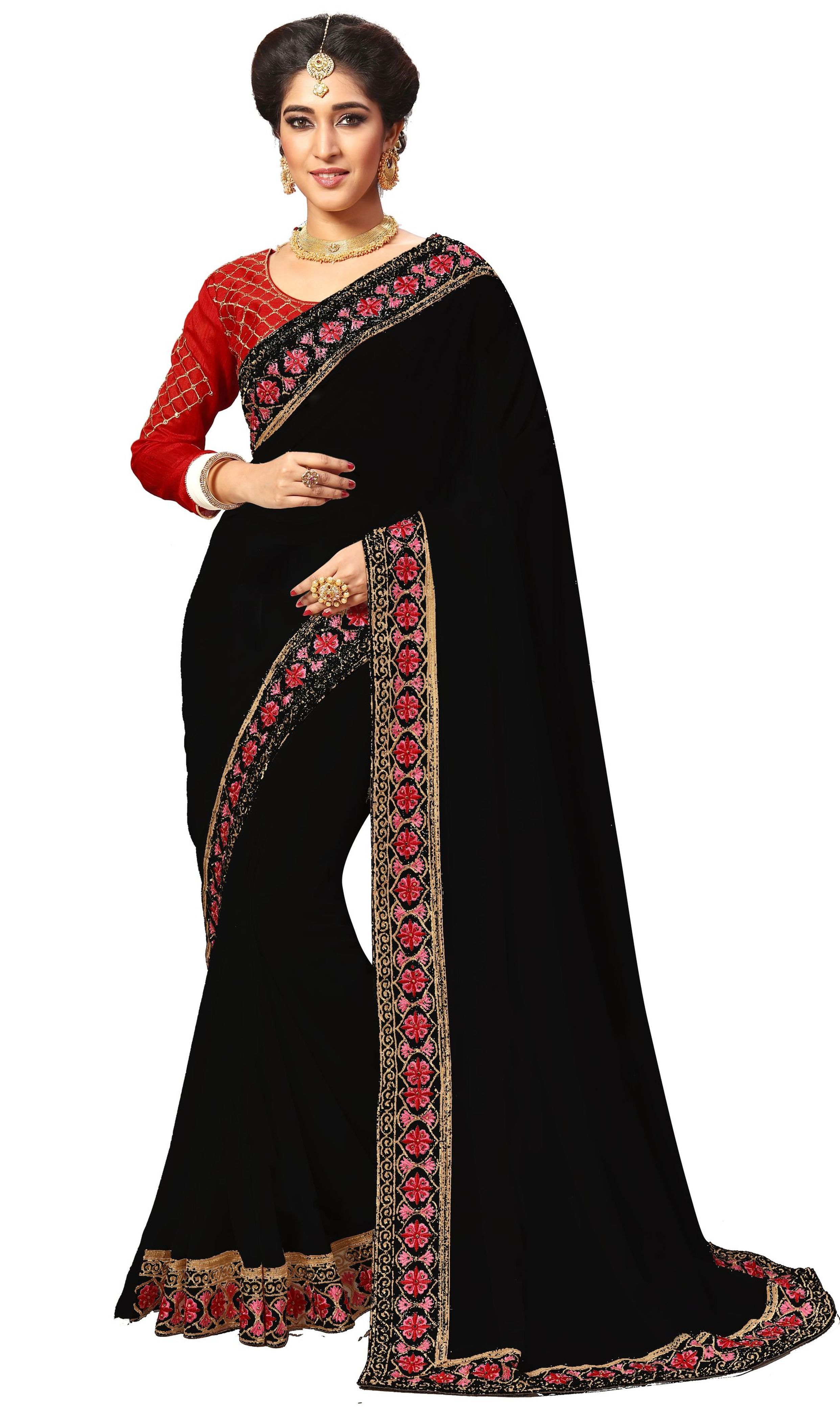 ब्लैक जॉर्जेट एम्ब्रॉयडरी बॉर्डर वर्क साड़ी