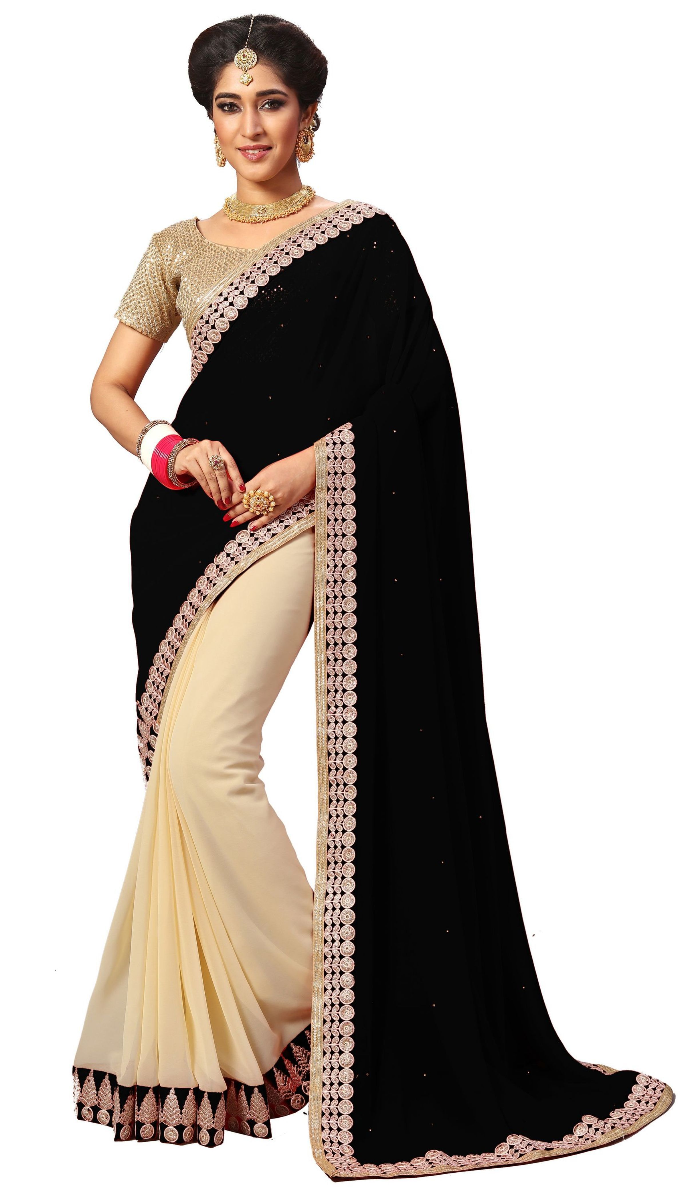 Explore in english - Georgette Embroidery Border Work Saree