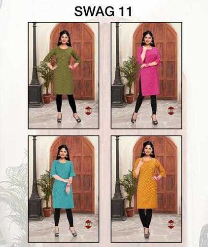 सांस लेने योग्य महिलाओं के लिए 3/4 स्लीव प्रिंटेड कॉटन कुर्ती कैज़ुअल वियर के लिए