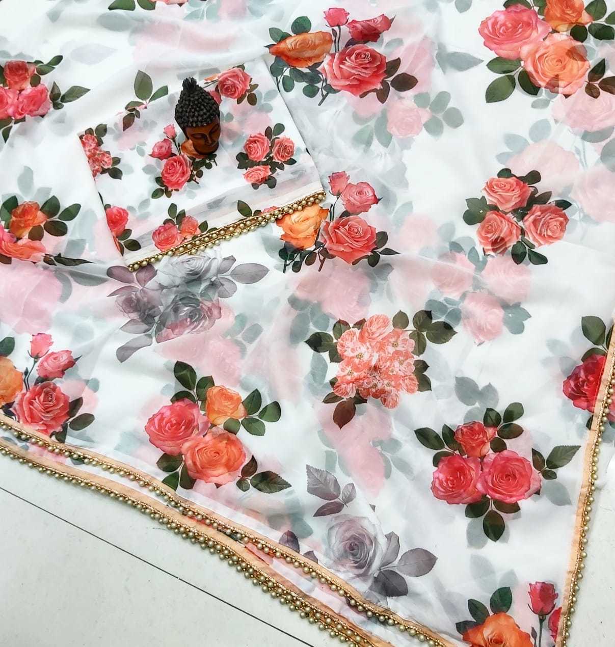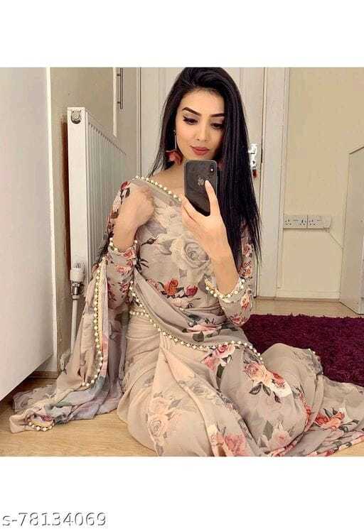 जॉर्जेट पर्ल लेस साड़ी