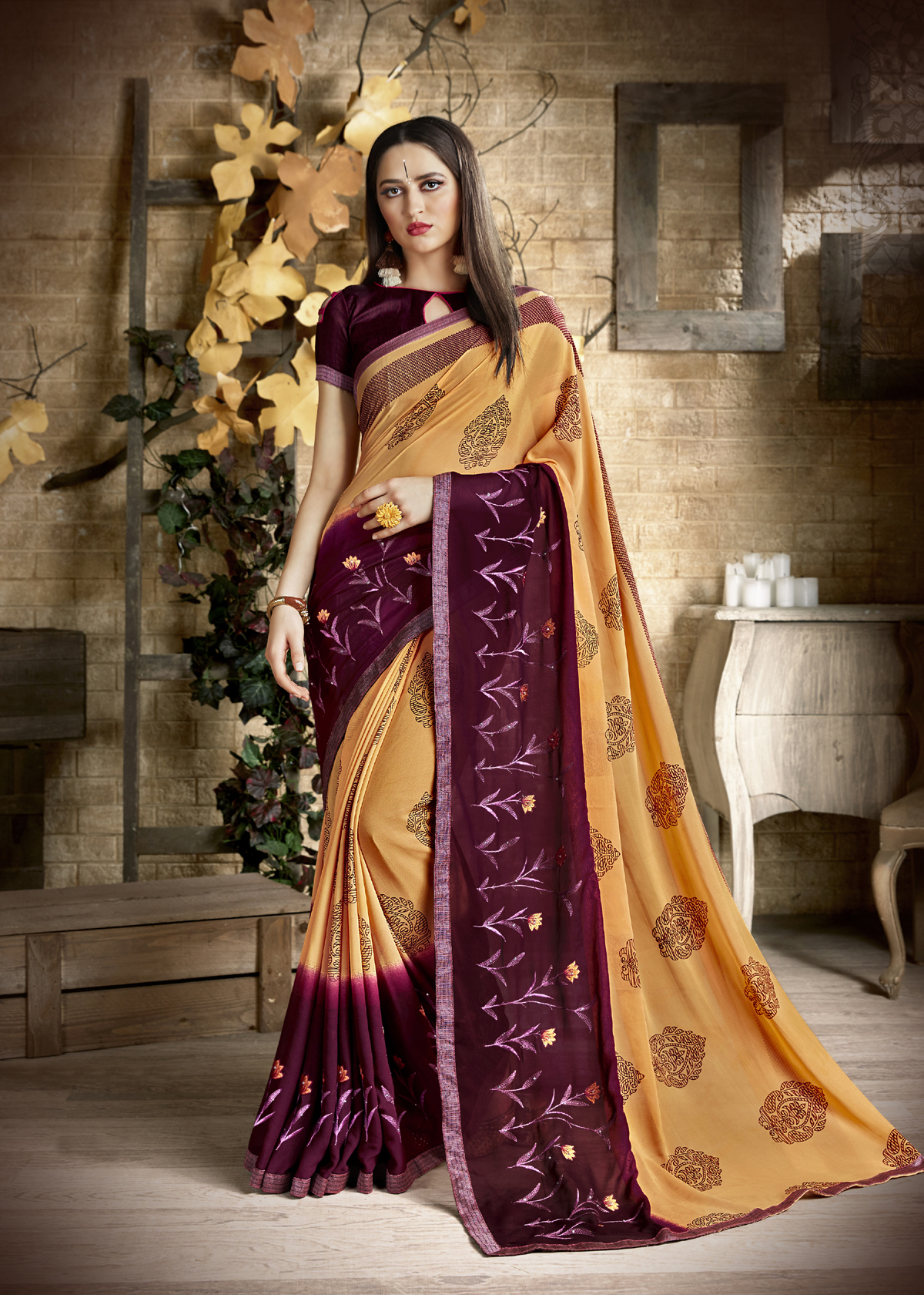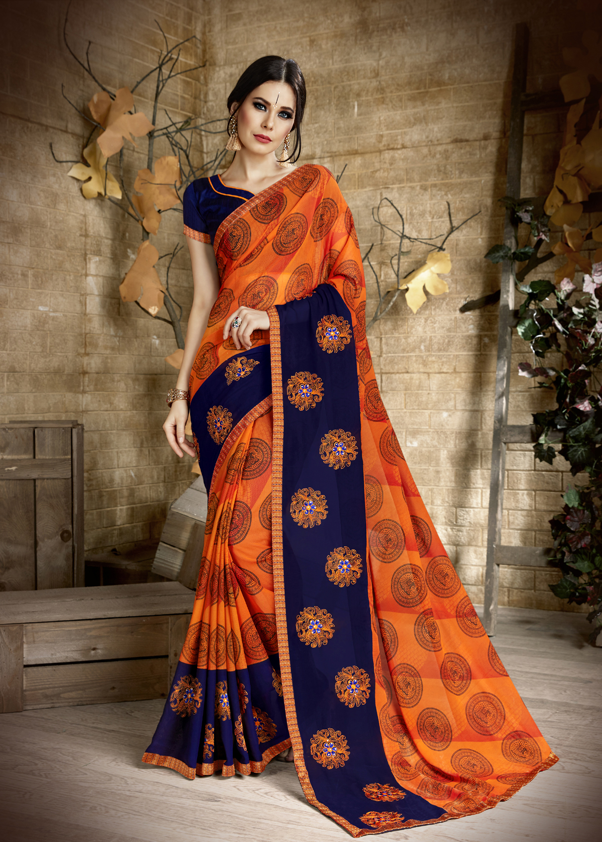 इमेज के अनुसार जॉर्जेट साड़ी