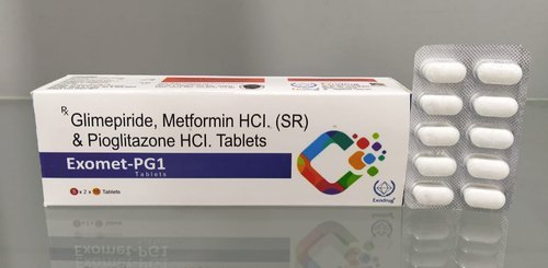 एक्सोमेट-पीजी1 गिलिमेपीराइड, मेटफोर्मिन एचसीआई और पियोग्लिटाज़ोन एचसीआई टैबलेट सामान्य दवाएं