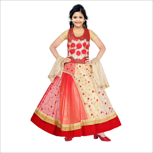 Explore in english - Girls Blush Embroidered Lehenga And Blouse With Dupatta Crop Top