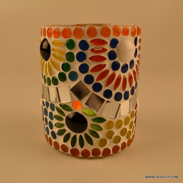 हस्तनिर्मित मोज़ेक ग्लास मोमबत्ती धारक