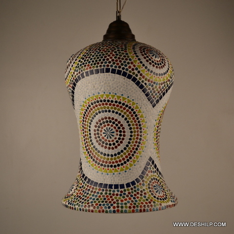 मल्टीकलर ग्लास वॉल डेकोरेटेड मोज़ेक वॉल हैंगिंग लैंप