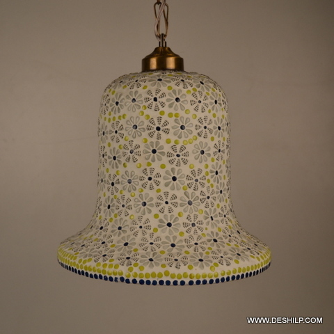 मल्टीकलर ग्लास व्हाइट मोज़ेक हैंगिंग