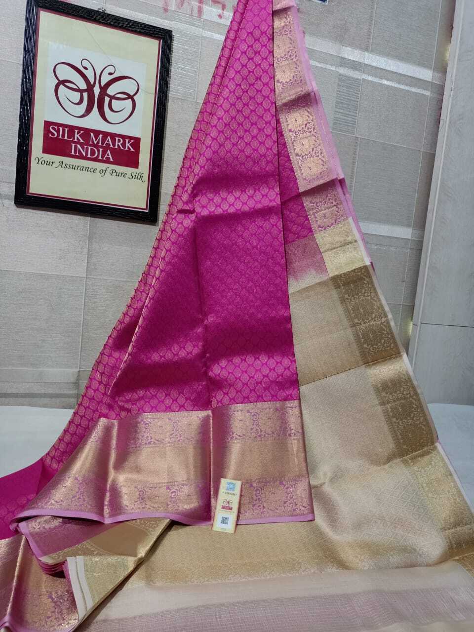 पिंक गोल्ड जरी वर्क कांजीवरम प्योर सिल्क साड़ी