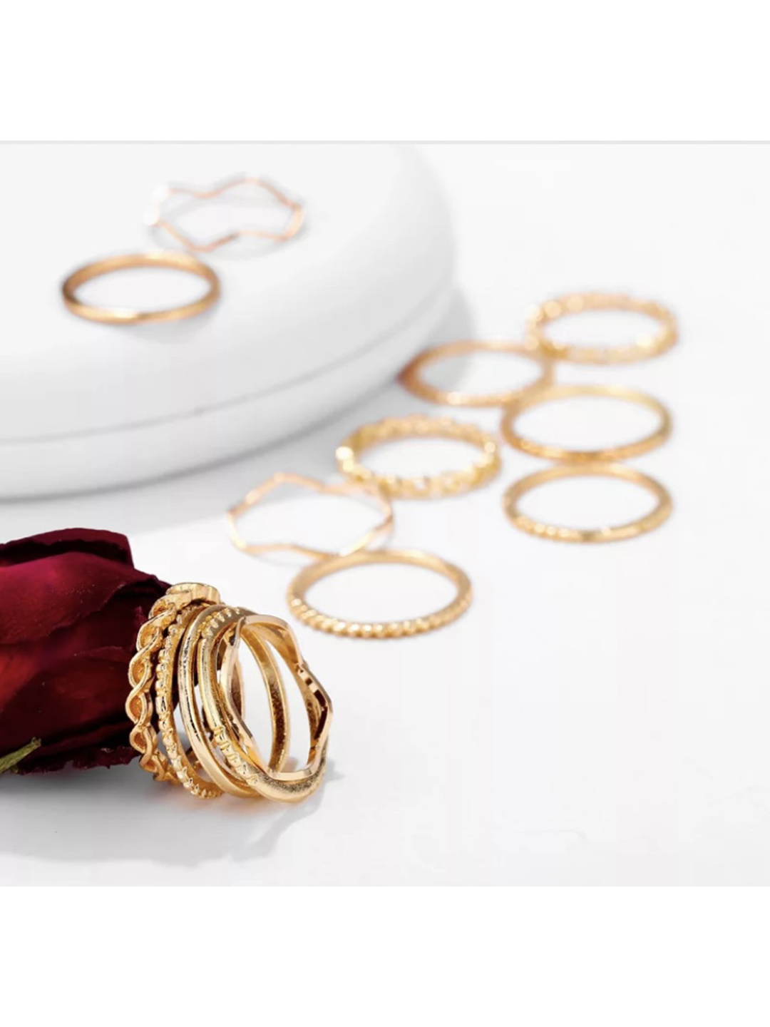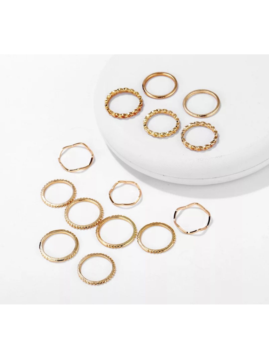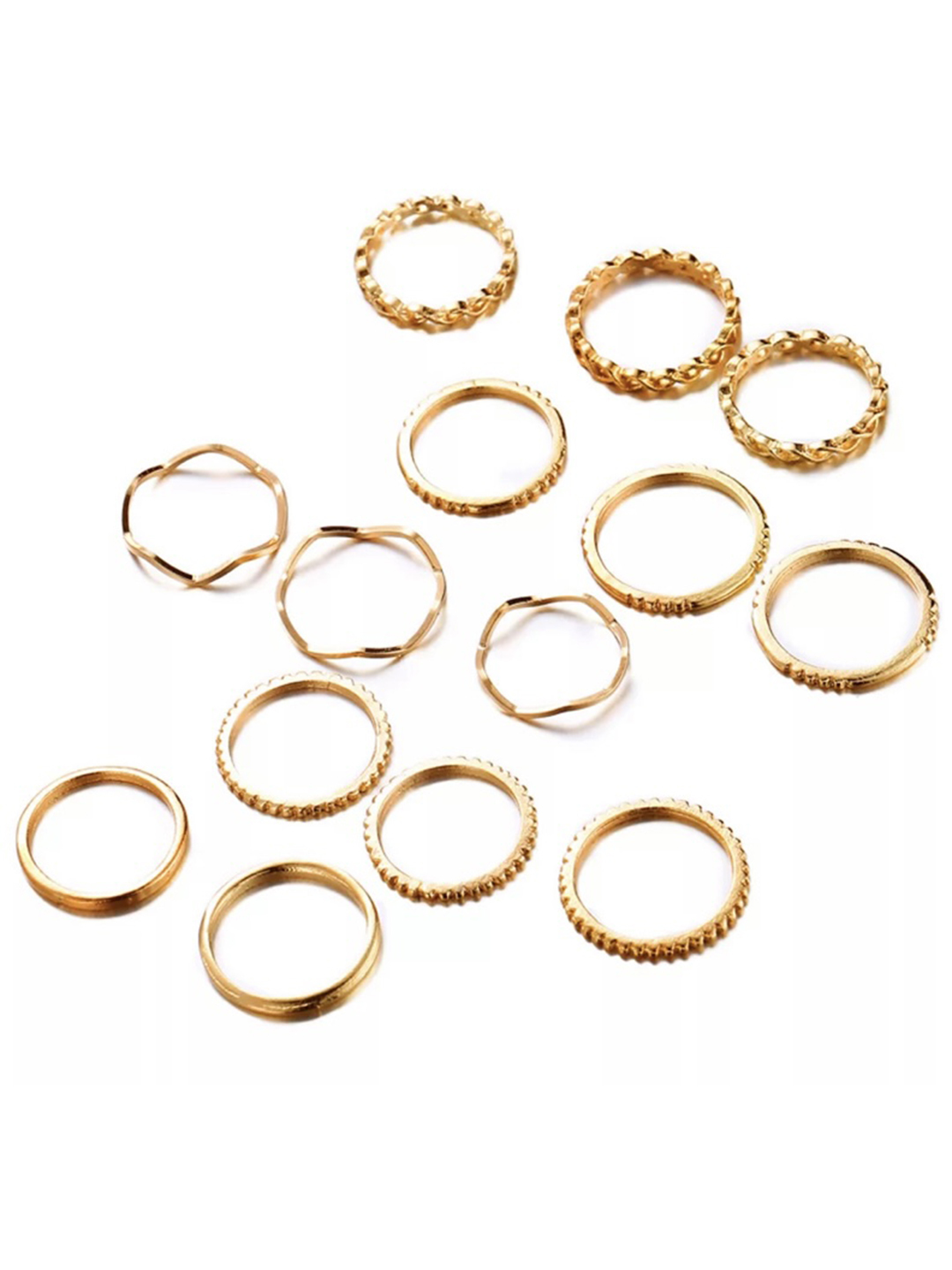 Explore in english - Gold Plated 14 Piece Plain Chain Ring Set