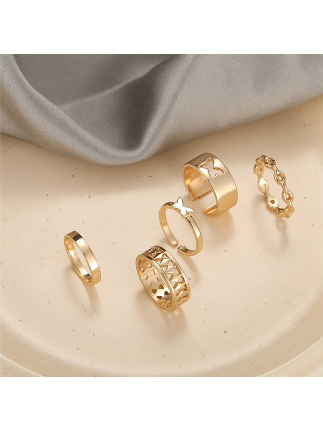 गोल्ड प्लेटेड 5 पीस बटरफ्लाई चेन कट्स रिंग सेट जेंडर: महिलाएं