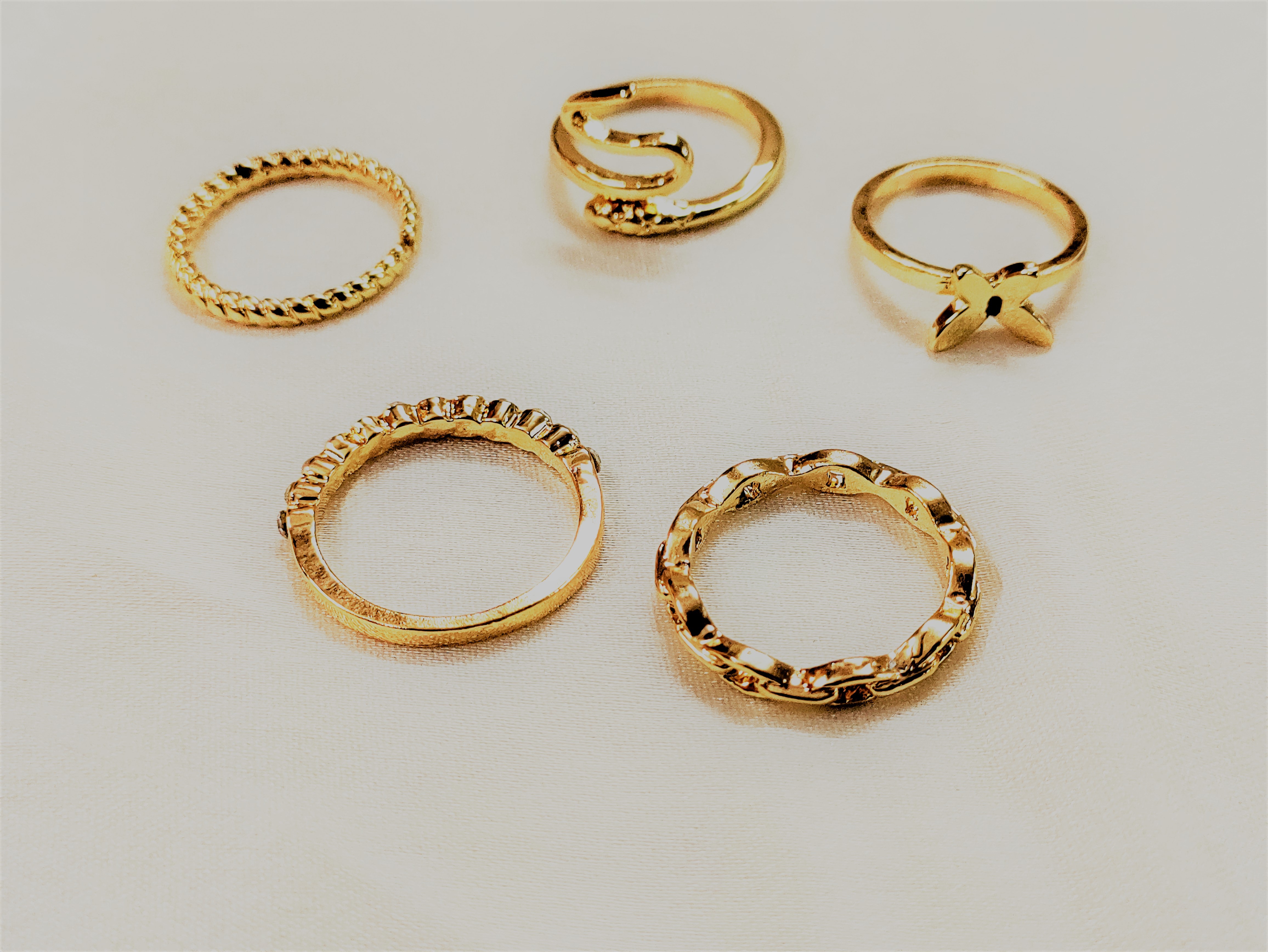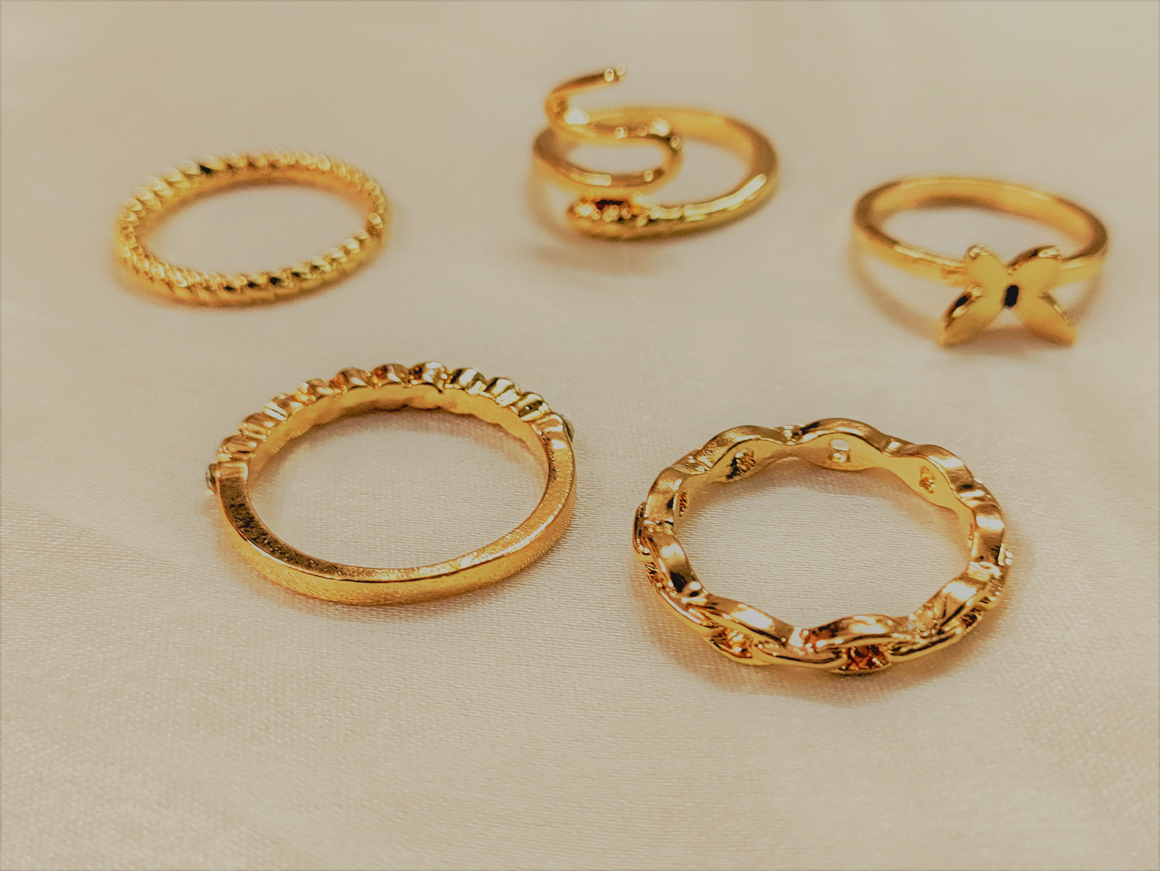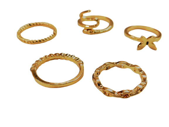 Explore in english - Gold Plated 5 Piece Snake Studd Ring Set