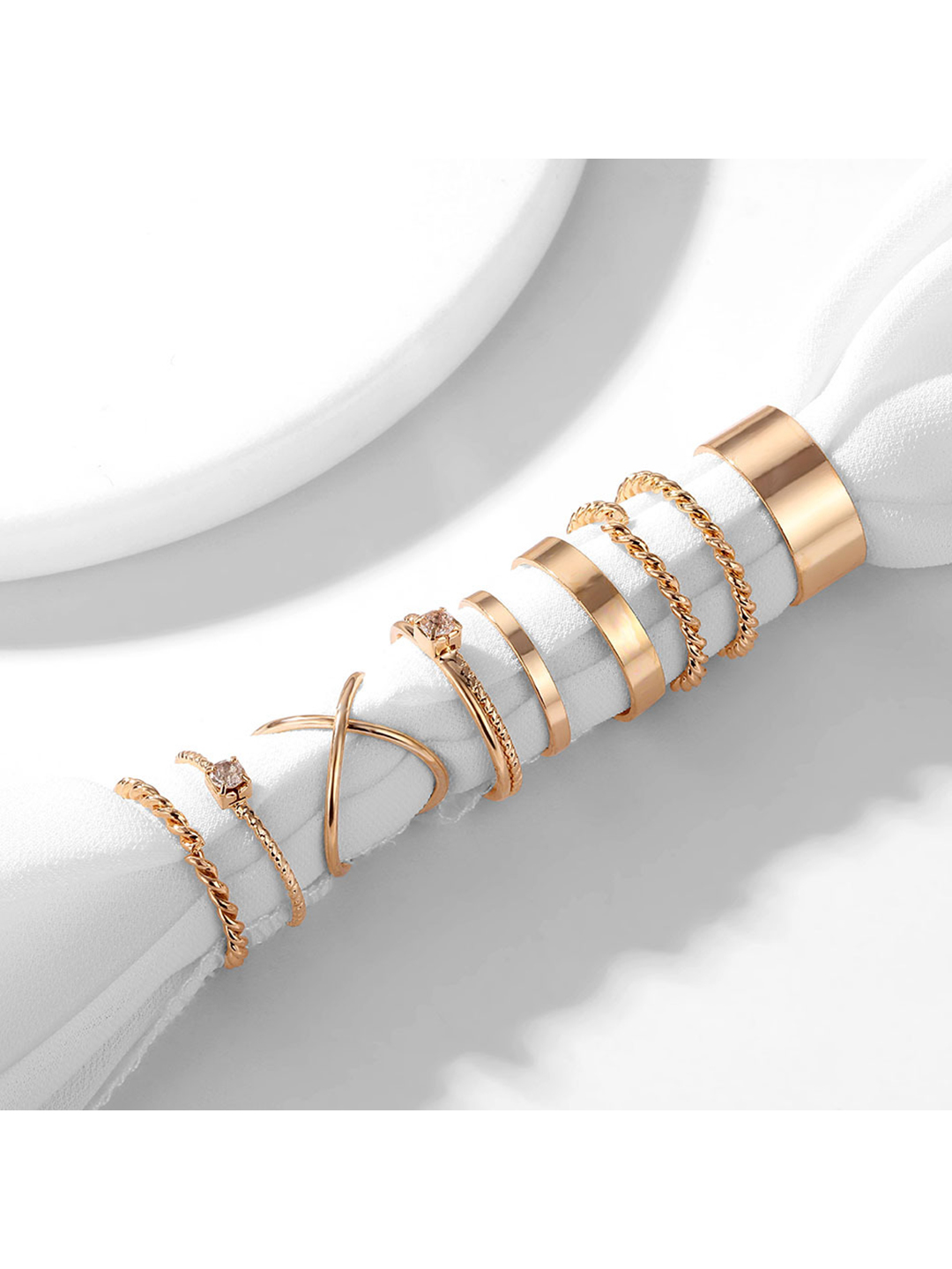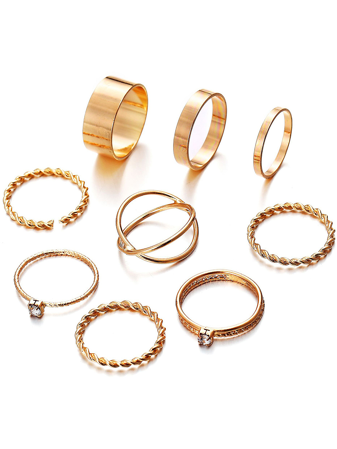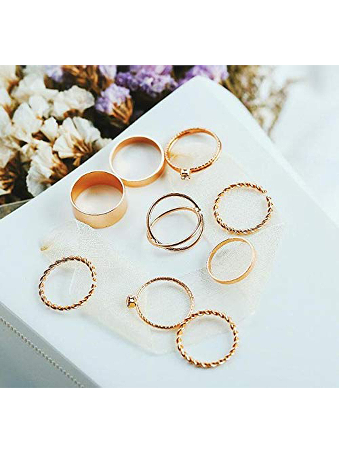 Explore in english - Gold Plated 9 Piece Multi Designs Ring Set
