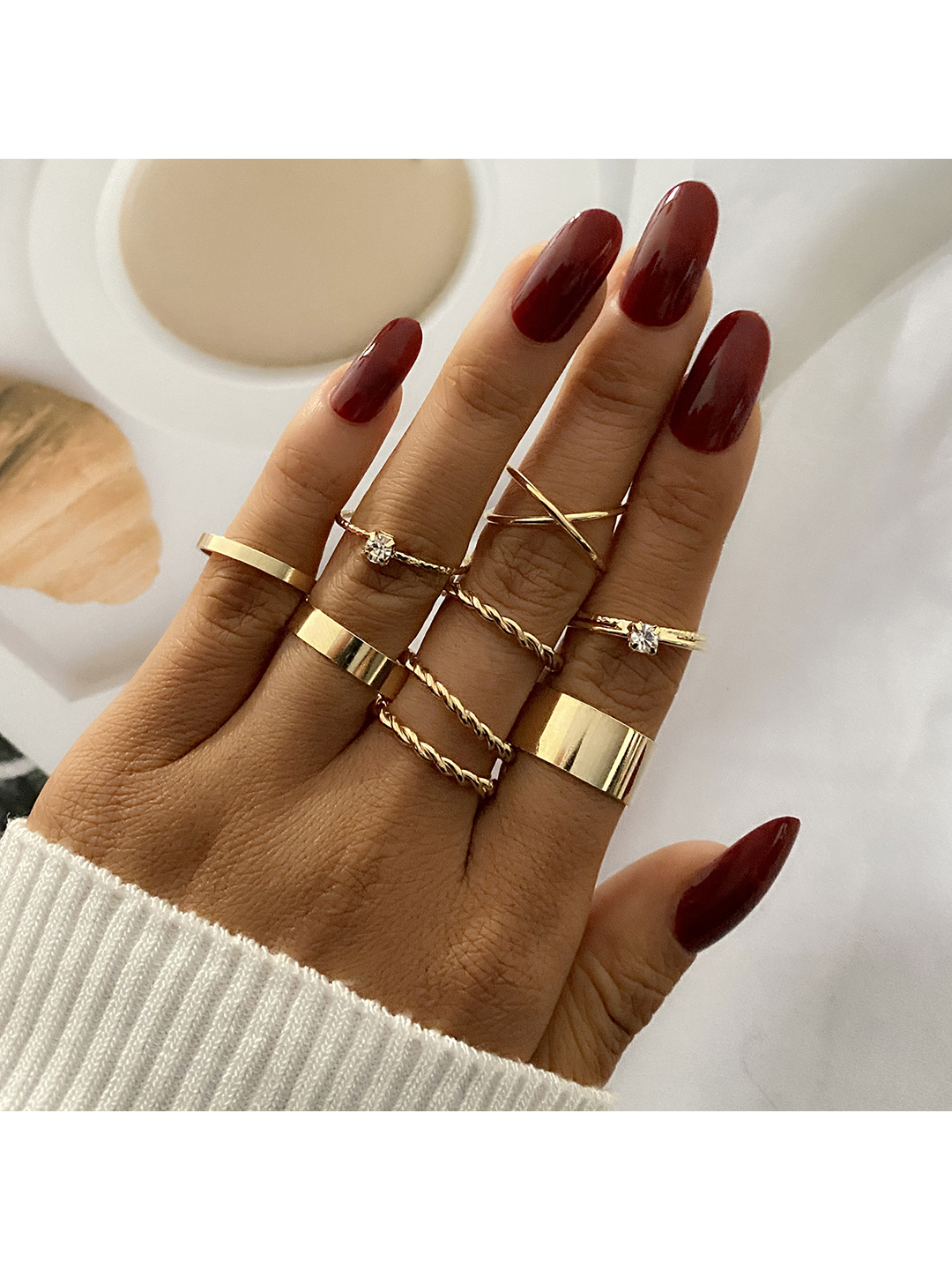 गोल्ड प्लेटेड 9 पीस मल्टी डिज़ाइन रिंग सेट जेंडर: महिलाएं