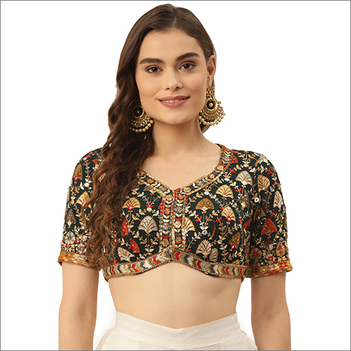 इंडियन गोल्डन ब्लाउज हाफ स्लीव ब्लाउज