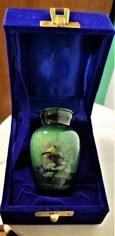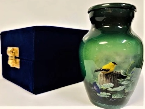 ग्रीन गोल्डफिंच श्मशान कलश - नया