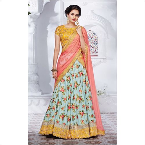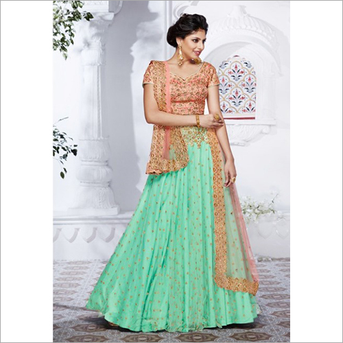 मल्टीकलर ग्रीन फैंसी लहंगा चोली में उपलब्ध