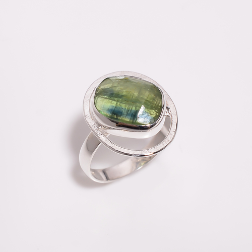 ग्रीन क्यानाइट कुशन कट जेमस्टोन 925 स्टर्लिंग सिल्वर रिंग साइज अस 7 जेंडर: महिलाएं
