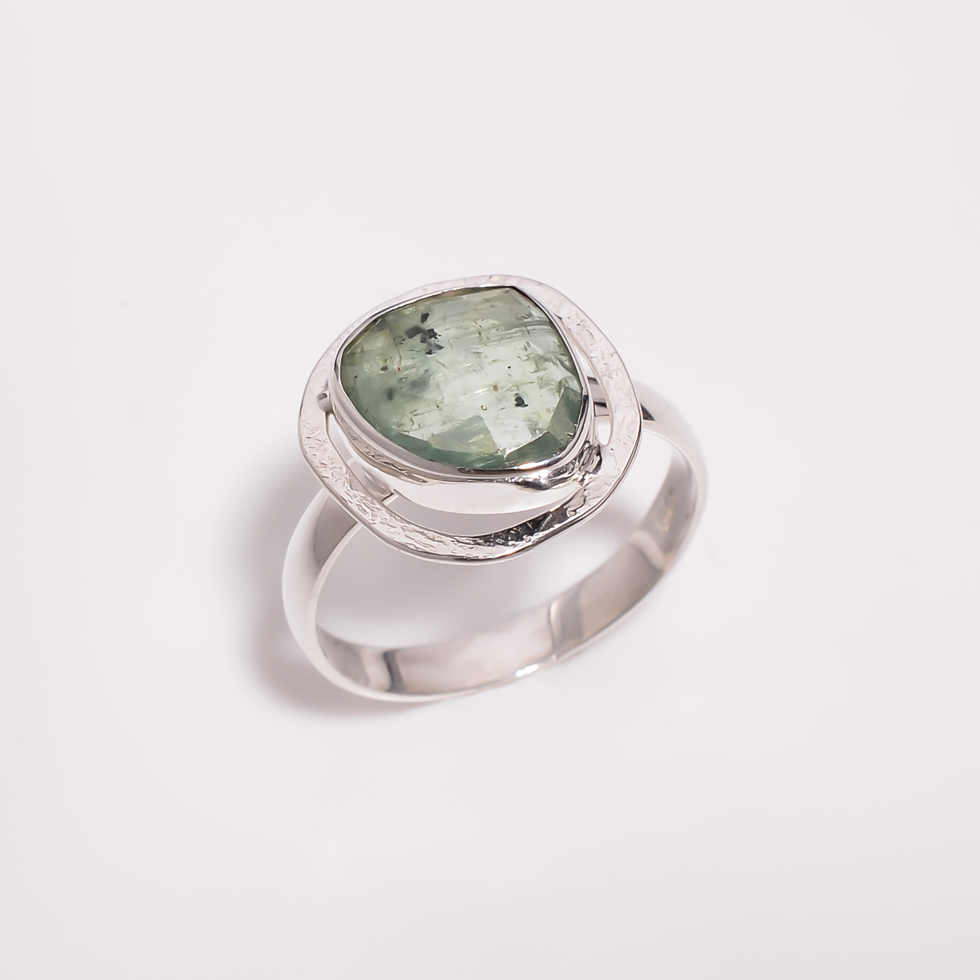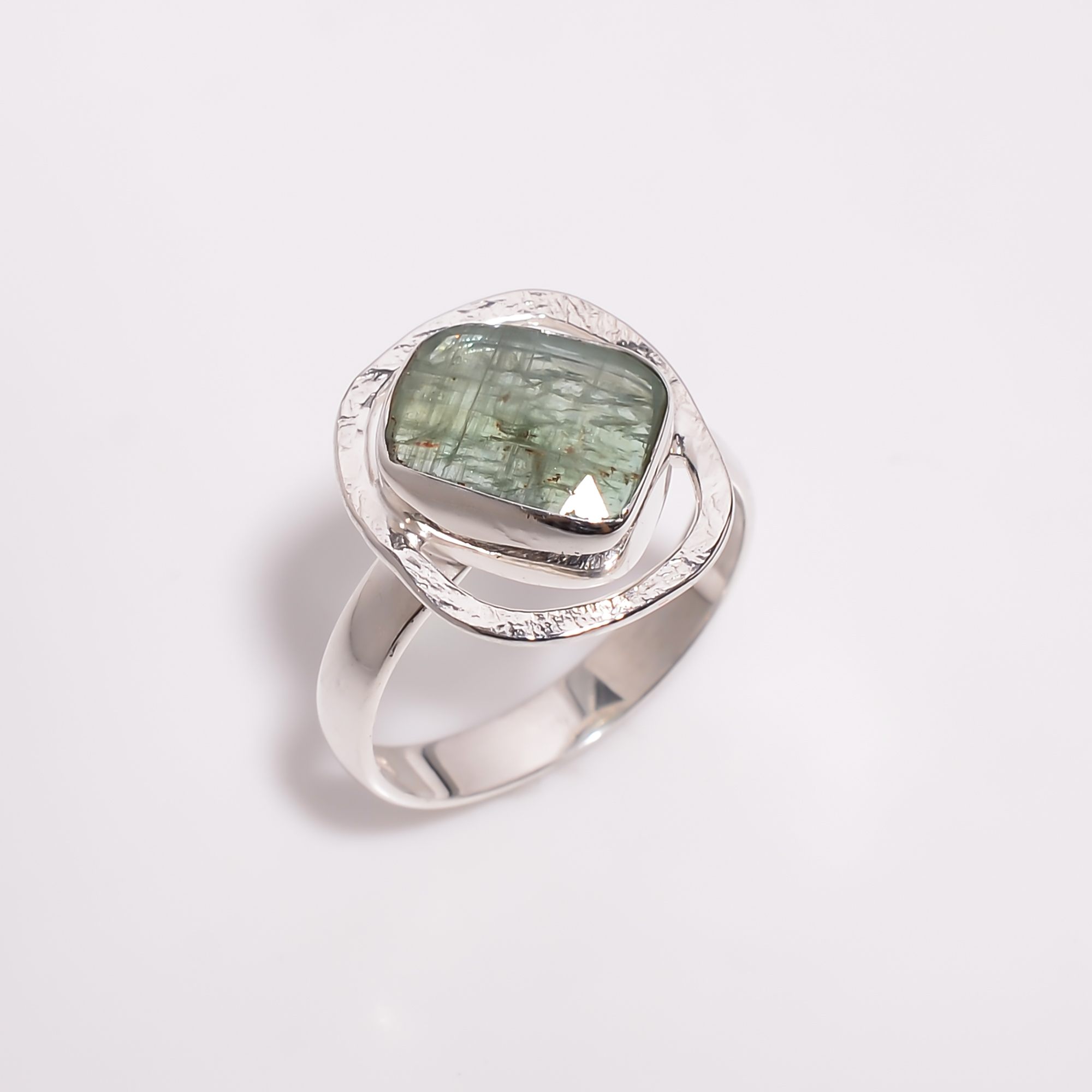 Explore in english - Green Kyanite Cushion Cut Gemstone 925 Sterling Silver Ring Size US 7