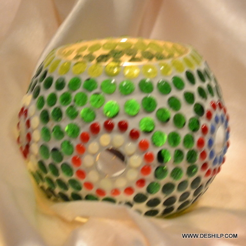हस्तनिर्मित मोज़ेक ग्लास मोमबत्ती धारक