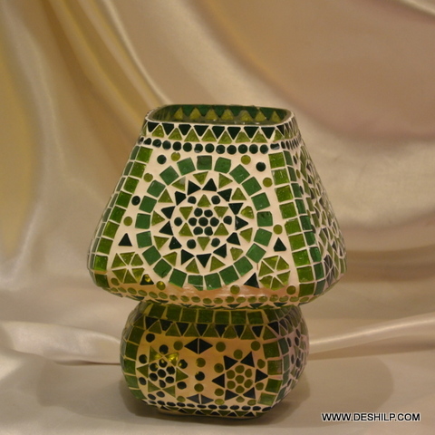 Explore in english - Table Top Green Mosaic Glass Table Lamp