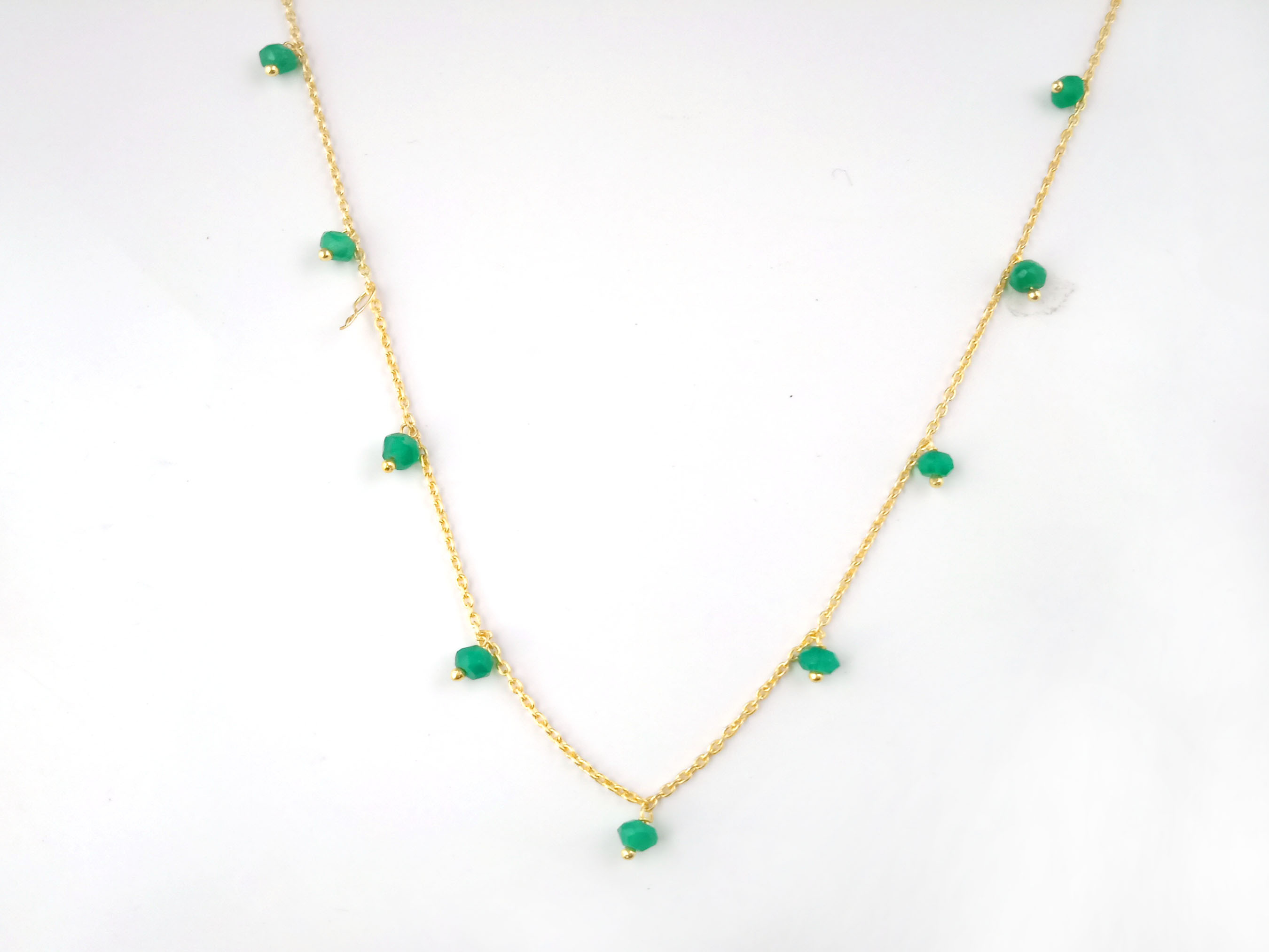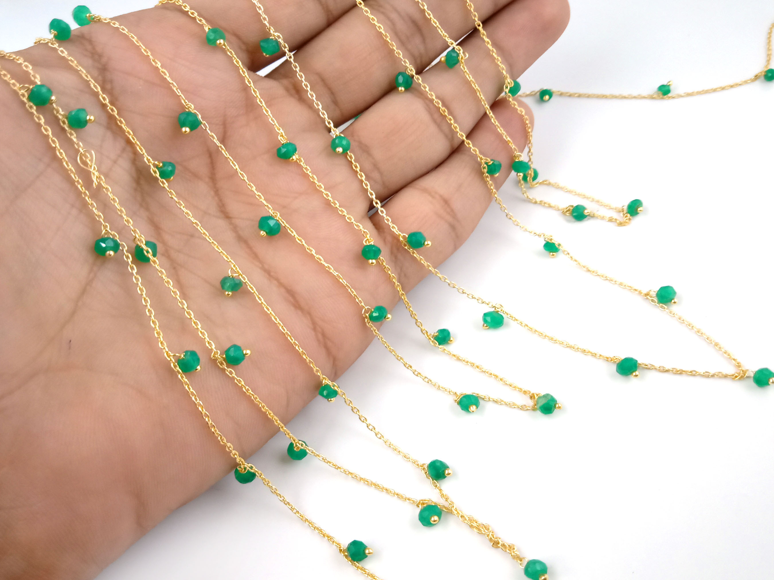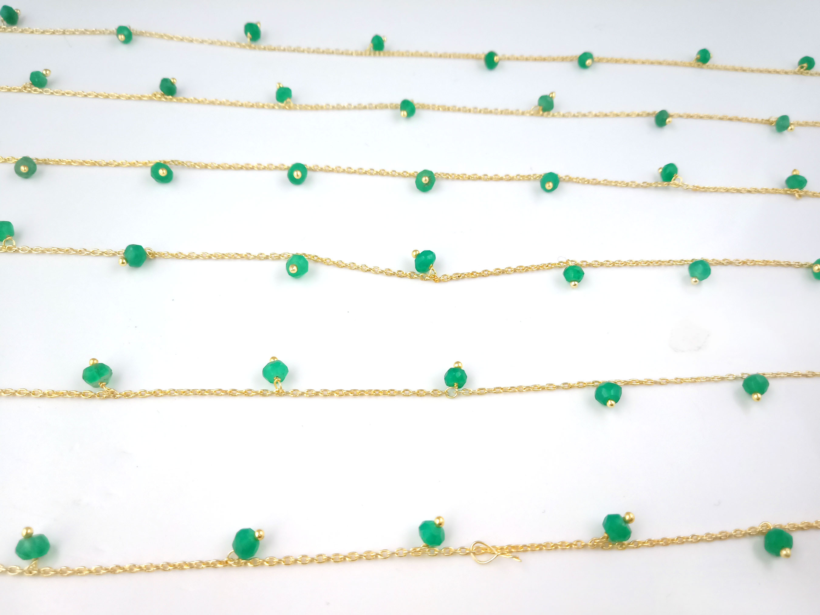 राउंड ग्रीन ओनिक्स रोज़री चेन गोल्ड प्लेटिंग साइज़ 3mm वायर रैप्ड जेमस्टोन ज्वेलरी ऑनक्सी बीड रोज़री चेन