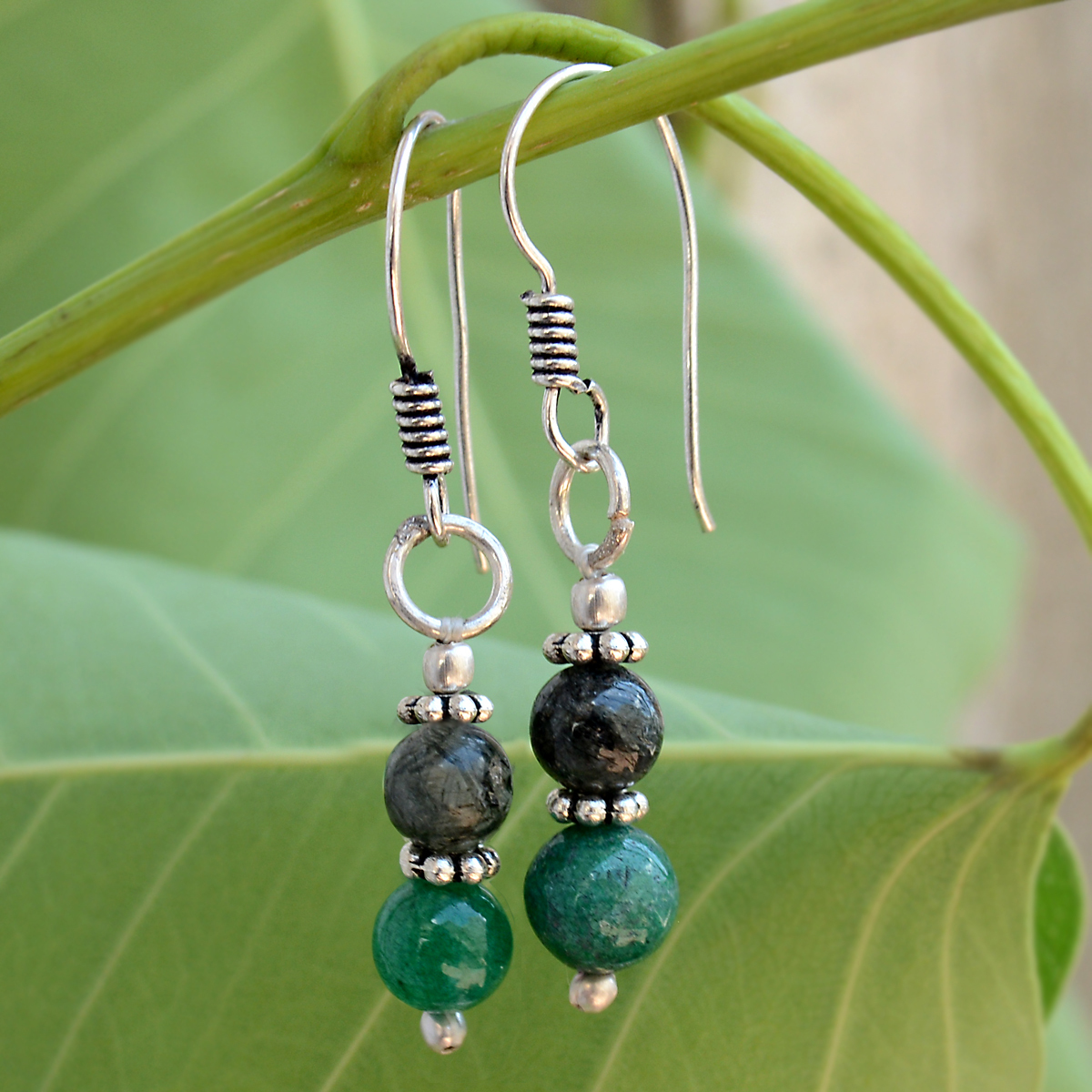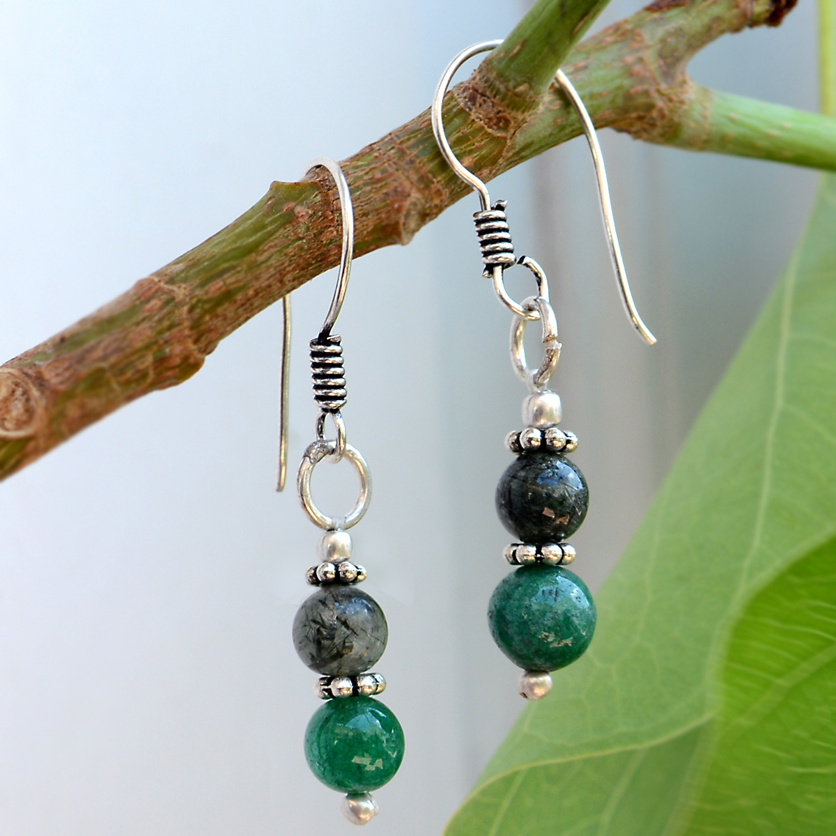 ग्रीन ओनिक्स एंड रूटाइल सिल्वर ईयररिंग Pg-156700 लिंग: महिलाएं