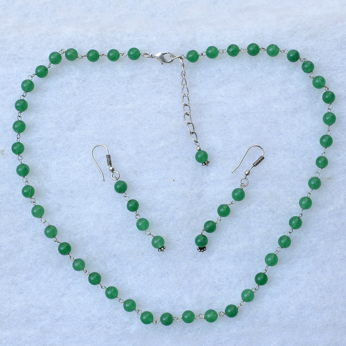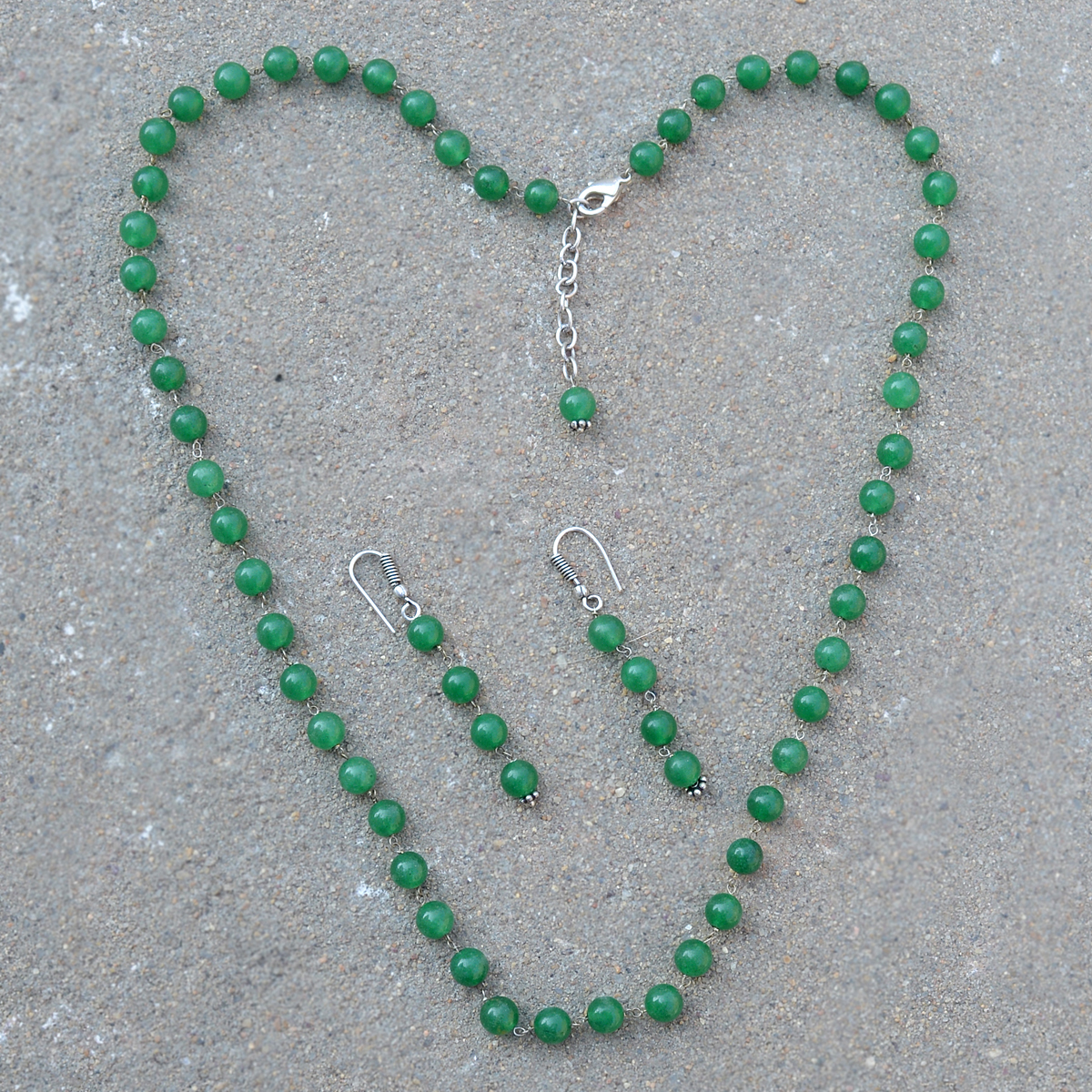 Explore in english - Green Quartz Silver Necklace Set PG-156686