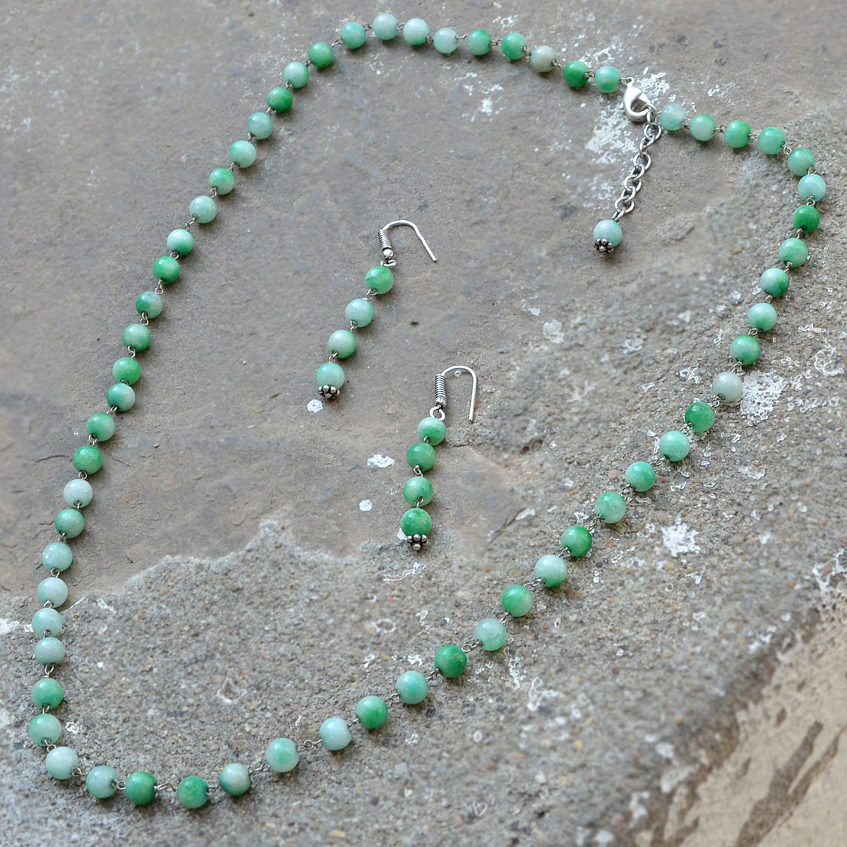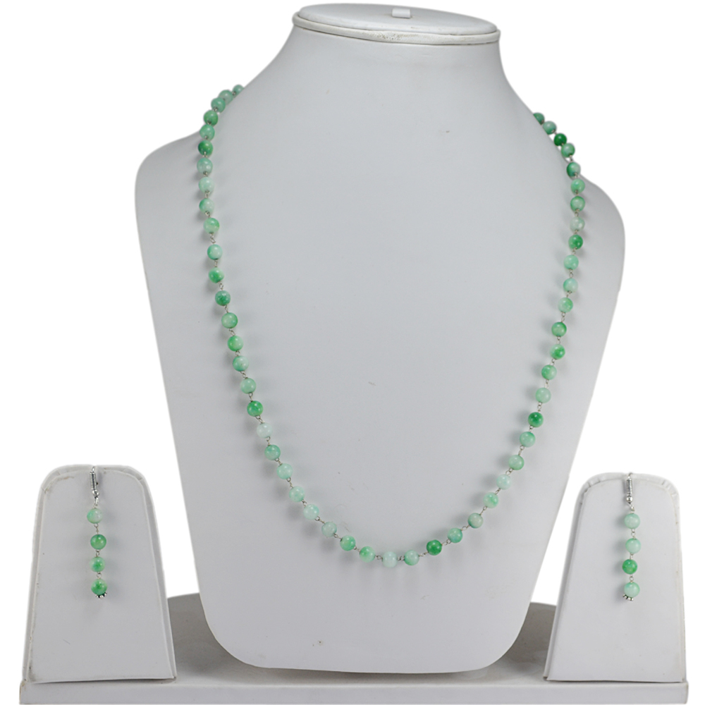 Explore in english - Green Quartz Stone Silver Necklace Set PG-156665