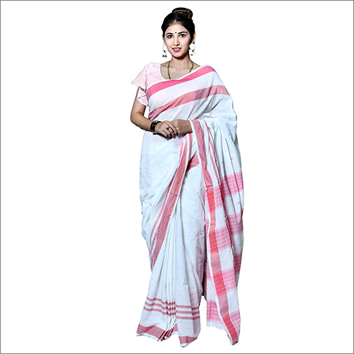 सफेद ग्रे और लाल बॉर्डर साड़ी