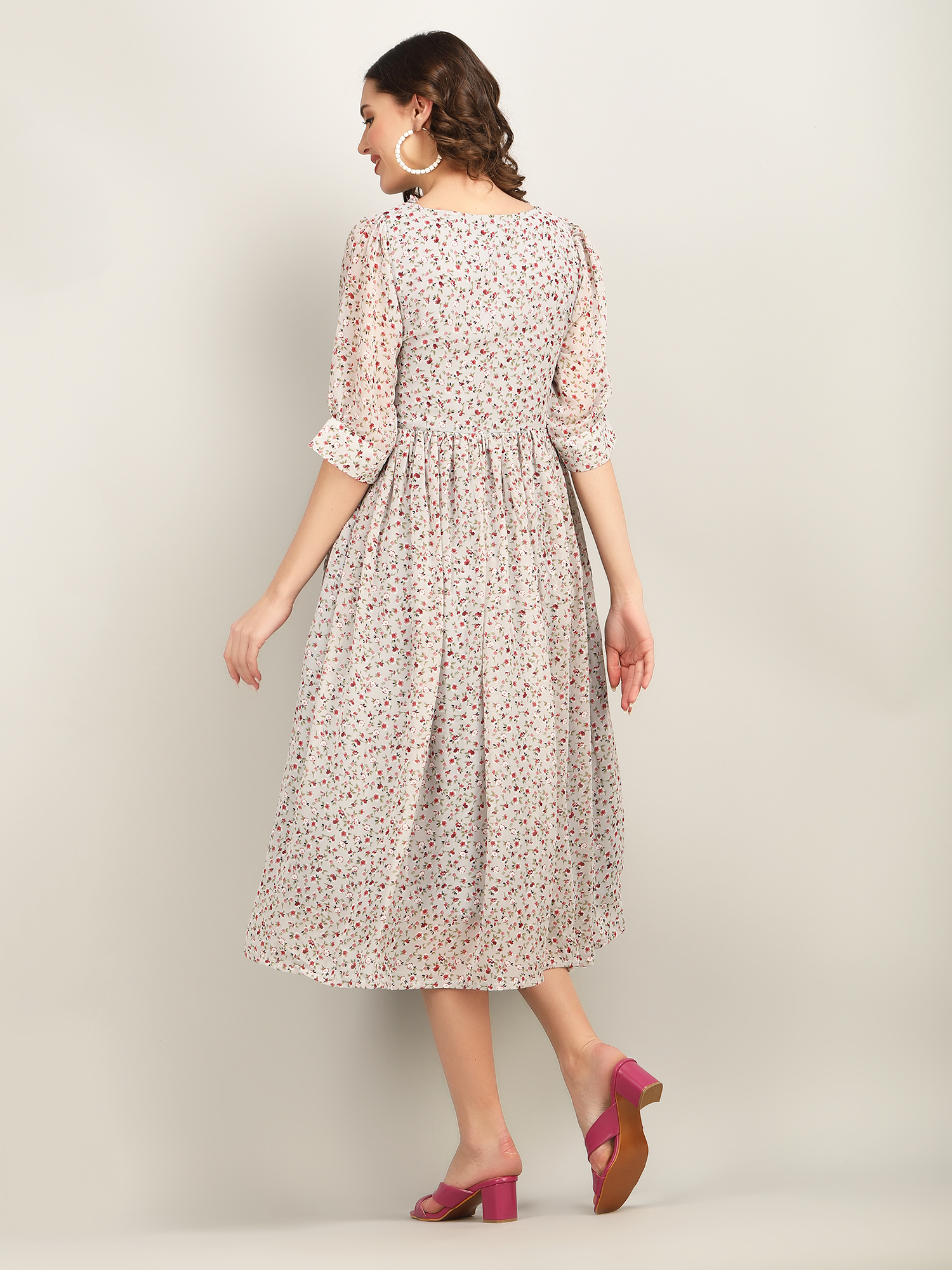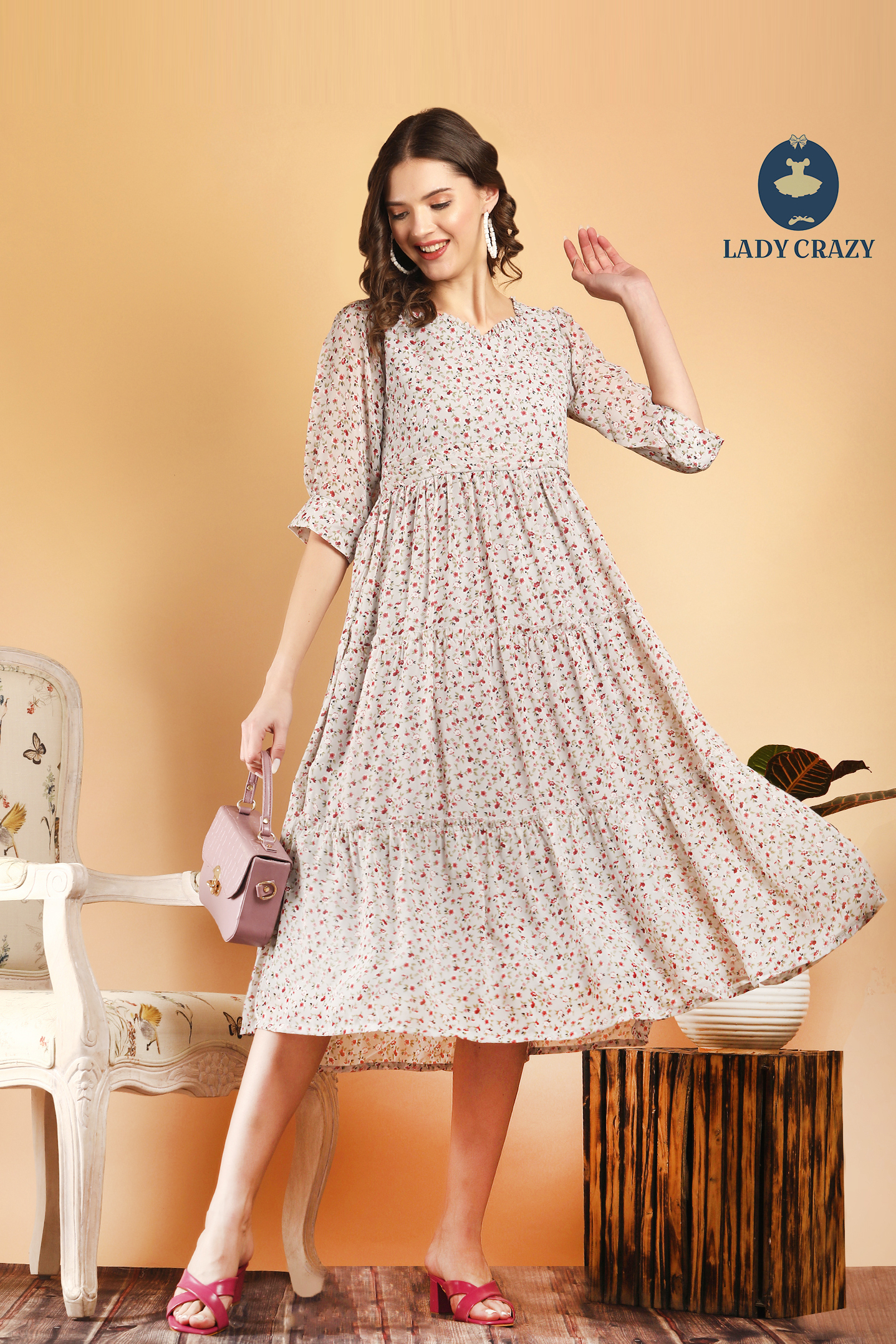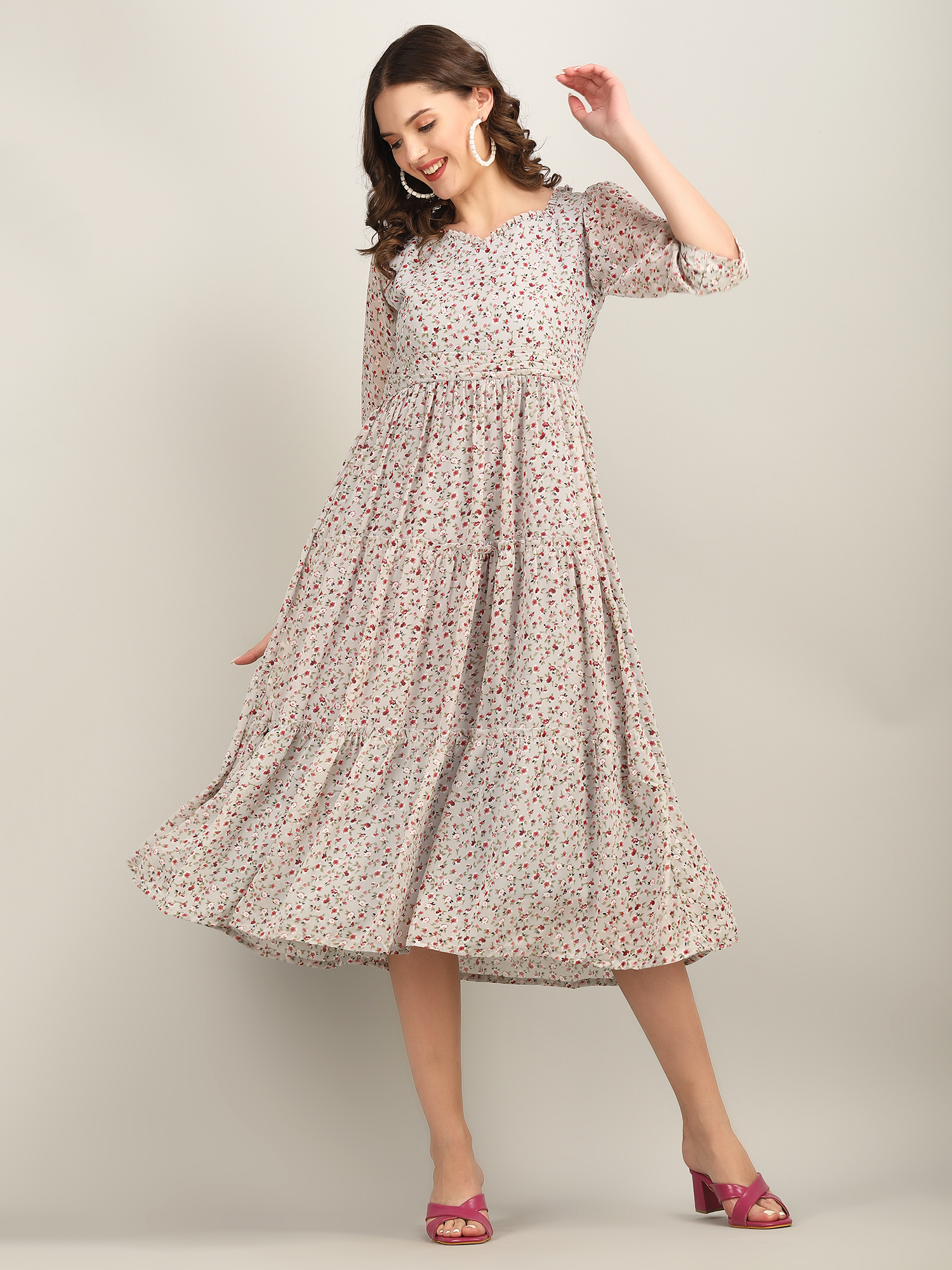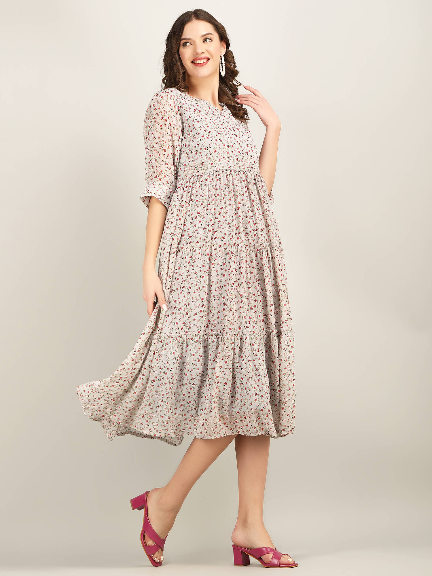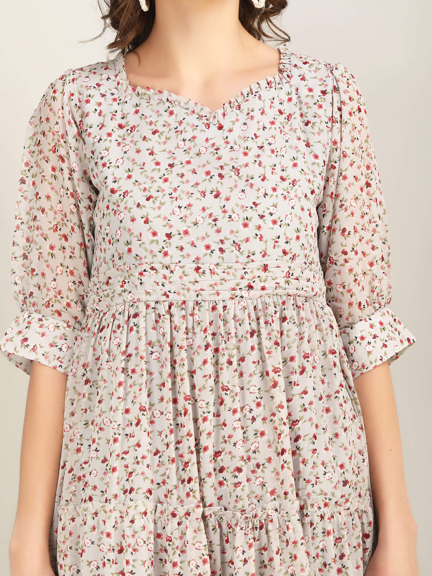 Explore in english - Grey Georgette Floral Print gala plitting dress P1