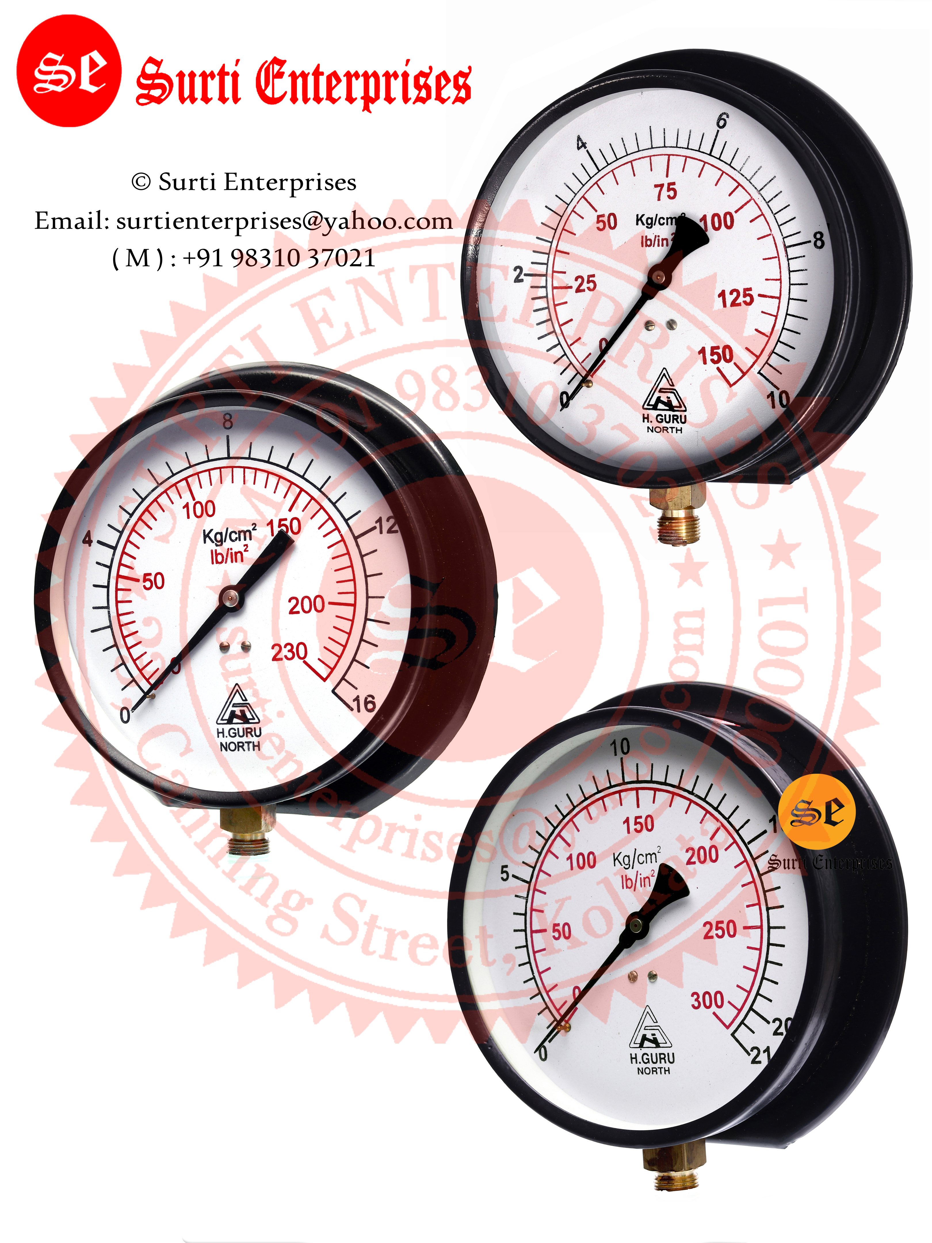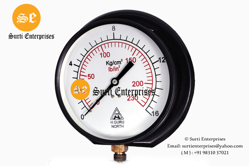 H.guru प्रेस्ड स्टील प्रेशर गेज 6 इंच 0-16 Kg सटीकता: 2%