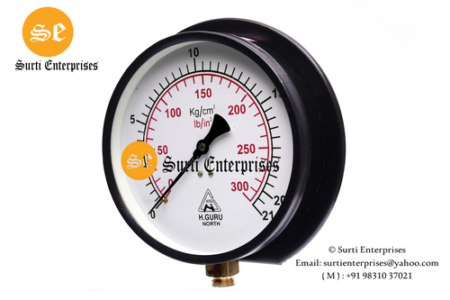 H.guru प्रेस्ड स्टील प्रेशर गेज 6 इंच 0-21 Kg सटीकता: 2%