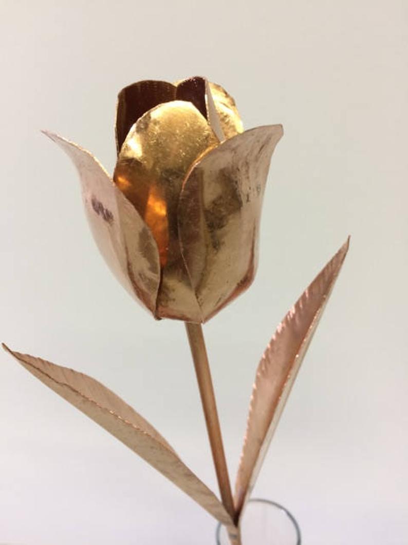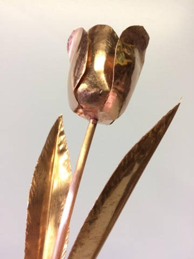 हाथ से तैयार कॉपर ट्यूलिप का आकार: ऊंचाई: 13 इंच; चौड़ाई: 3 इंच; गहराई: 3 इंच