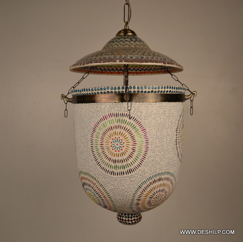 Explore in english - White And Multicolor rooftop Hand Decor Glass Wall Hanging