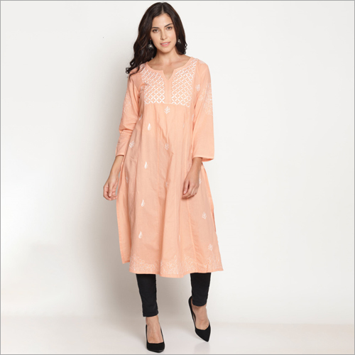 Explore in english - Hand Embroidered Lucknowi Chikankari Long Kurti