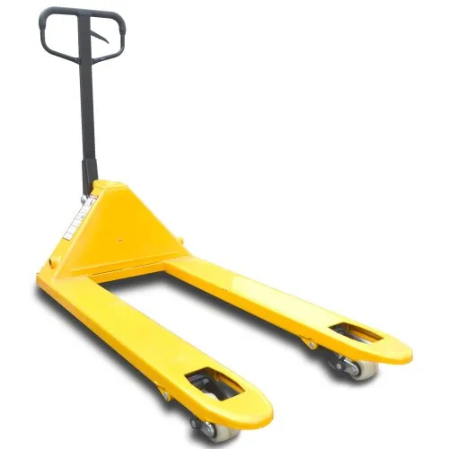ब्लैक एंड येलो हैंड ऑपरेटेड हैंड पैलेट ट्रक