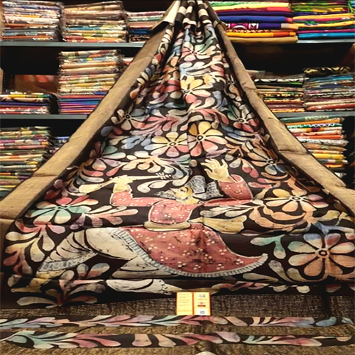Explore in english - Hand Wax Batik Sarees on Zori Bordered Pure Deshi Bengal Tusser Silk Fabric