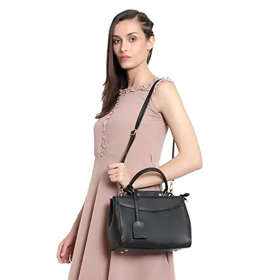 क्रॉसबॉडी एडजस्टेबल शोल्डर स्ट्रैप के साथ ब्लैक हैंडबैग