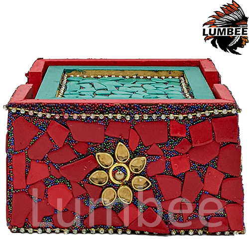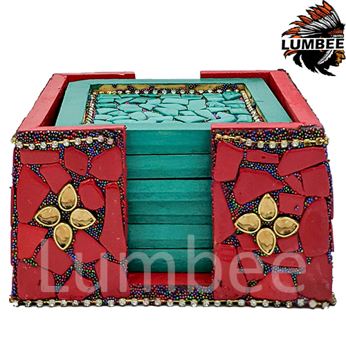 रेड एंड ग्रीन हैंडक्राफ्टेड वुडन स्टोन पेंटेड कोस्टर