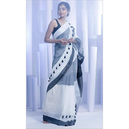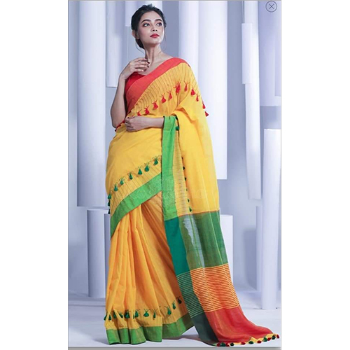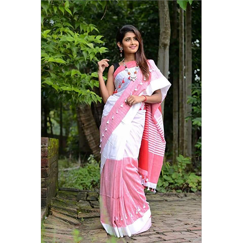 Explore in english - Handloom Khadi Cotton Pompom Sarees