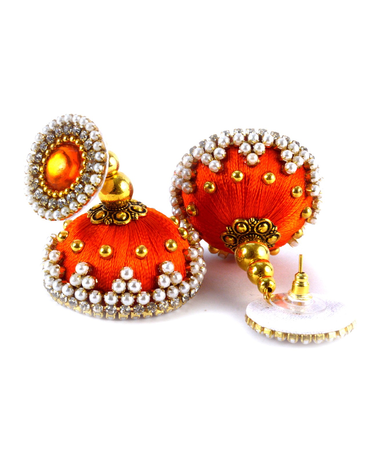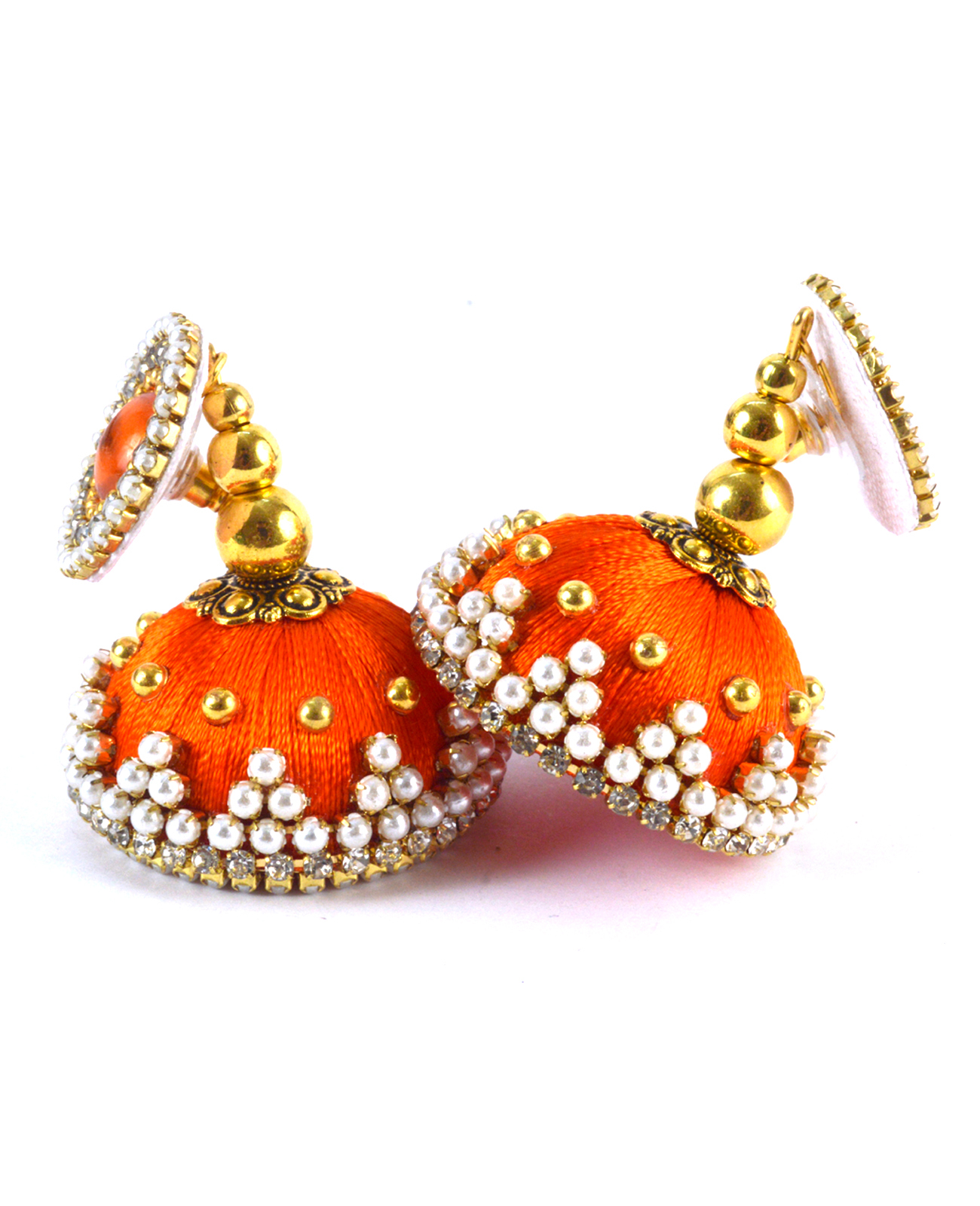 हैंडमेड ऑरेंज (नारंगी) सिल्क थ्रेड बीडेड इयररिंग