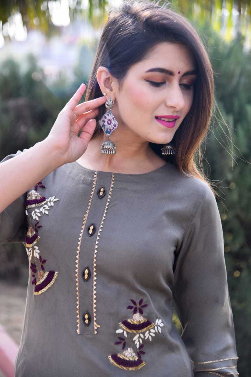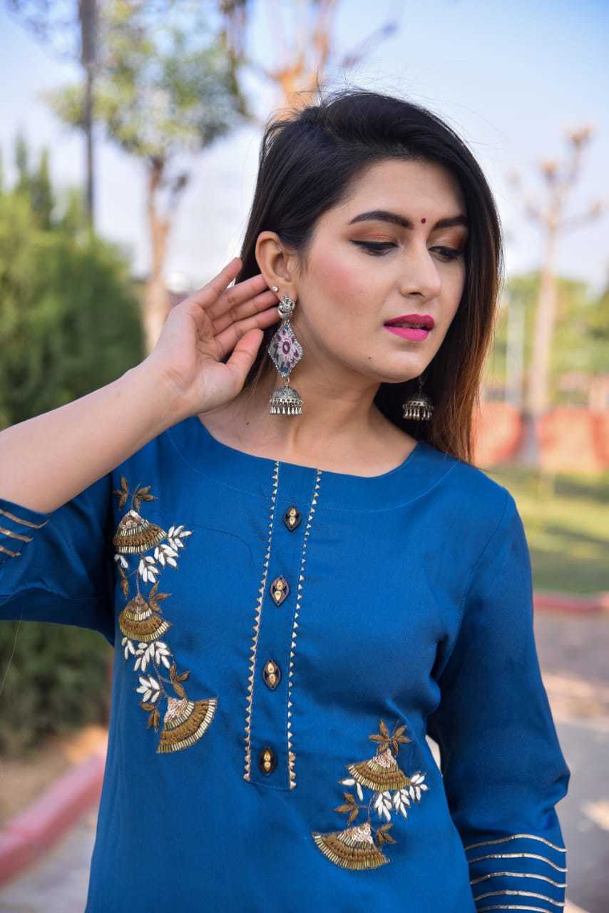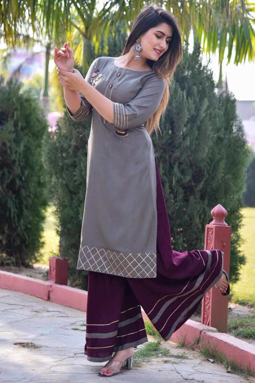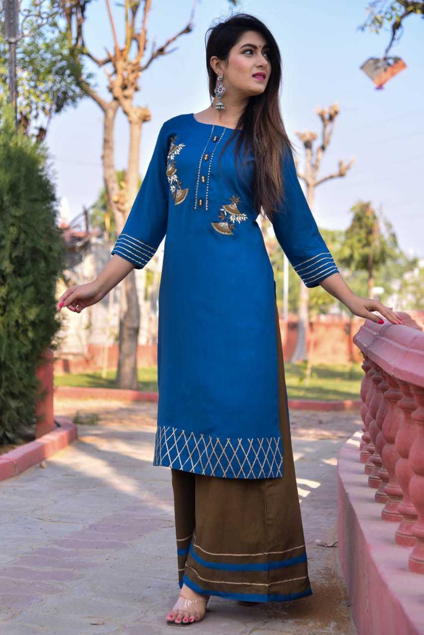 डिवाइडर प्लाज़ो के साथ ड्राई क्लीनिंग हैंडवर्क डिज़ाइनर रेयन कुर्ती