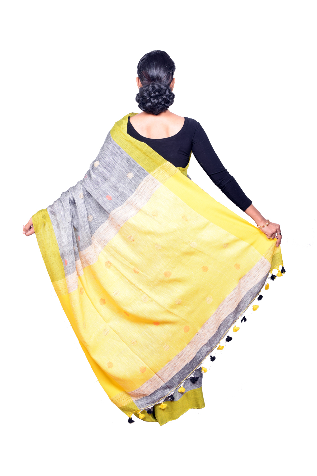 ग्रे हाथ से बुनी हुई लिनन साड़ी